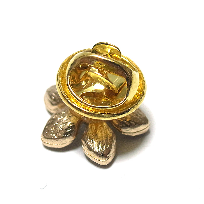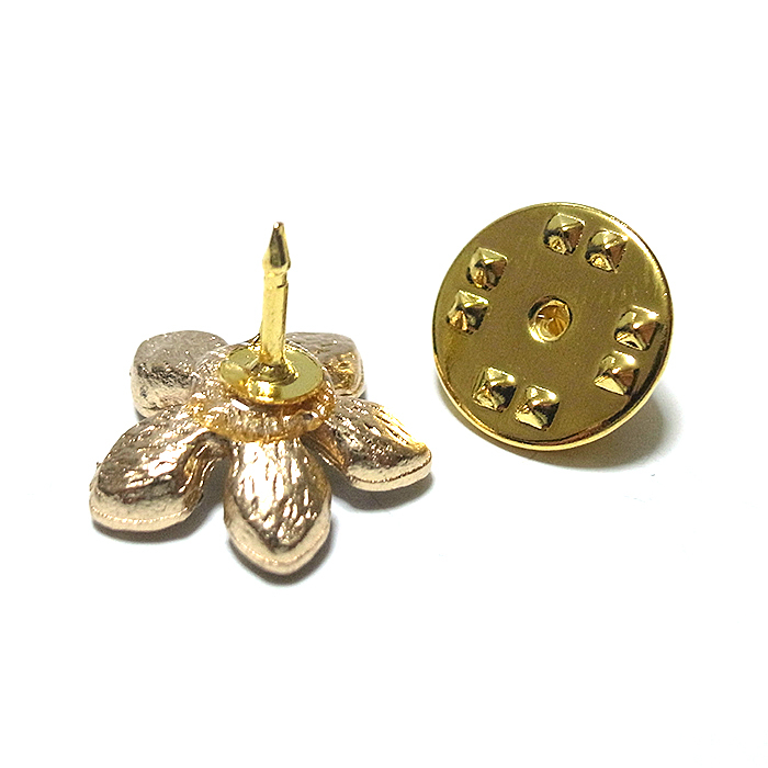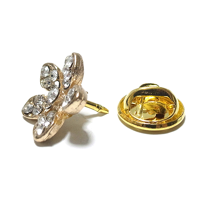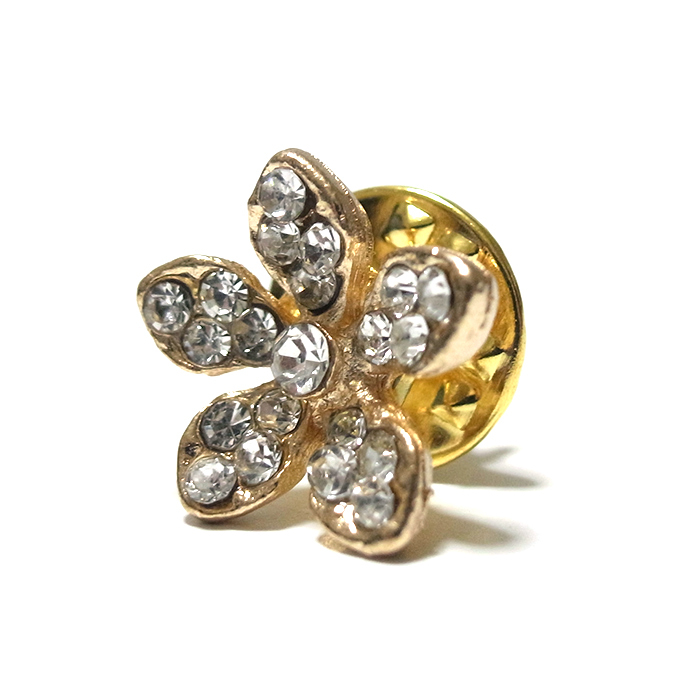 ラペルピン★ピンズ 花 フラワー 花びら 5枚 キラキラ ラインストーン ゴールド pin-1892
