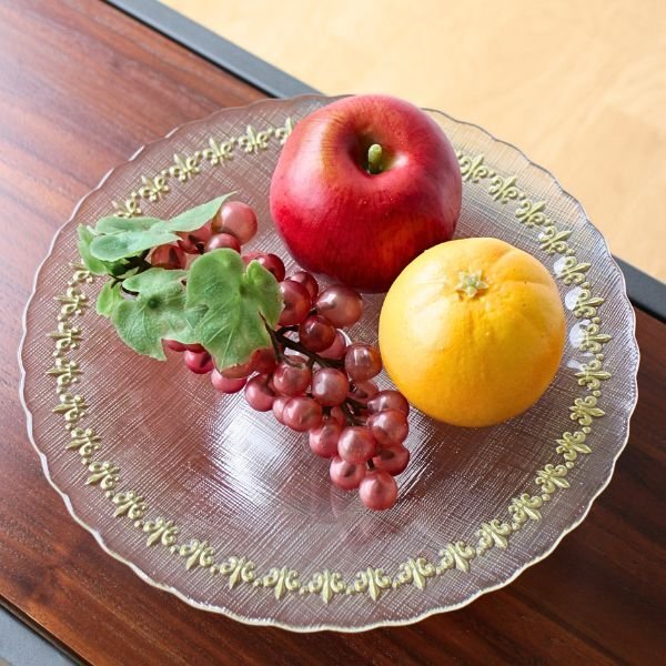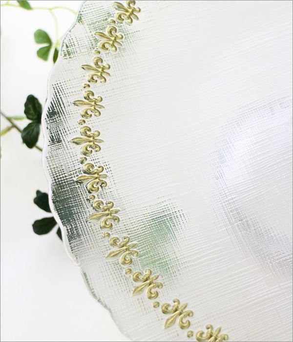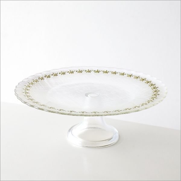 | ゴールドのフレンチリリーの縁取りがおしゃれな トルコ製のガラスケーキスタンド 細かな網目模様や 控えめなフリルをつけた エレガントで高級感のあるプレートに シンプルな土台を付けています 6号から8号程度の ホールケーキを乗せられるサイズで スイーツやフルーツを並べて おもてなしのコーディネートに・・・ キャンドルや香水瓶などを ディスプレイして インテリアとしても お楽しみいただけます 商品名 : ガラスのケーキスタンド フルールドリス 商品番号 : hal2731 全体のサイズ(cm) : 直径27×高さ10 平面部分:約16 材質 : ガラス 使用方法 : 食洗機)× 電子レンジ)× オーブン)× 重量 : 900g 生産国 : トルコ ※アンティーク仕上げのため色むら、模様ムラを施しています ※製法上、ガラスには気泡やヨレ、小傷等がある場合がございます ※スタンドが僅かに中心よりずれている場合がございます ※生産工程上、裏面の塗膜が剥がれることがございます。お手入れの際は、金たわしやクレンザーは使わず柔らかいスポンジをご使用ください ※ディスプレイによる色の違いはご了承下さい |