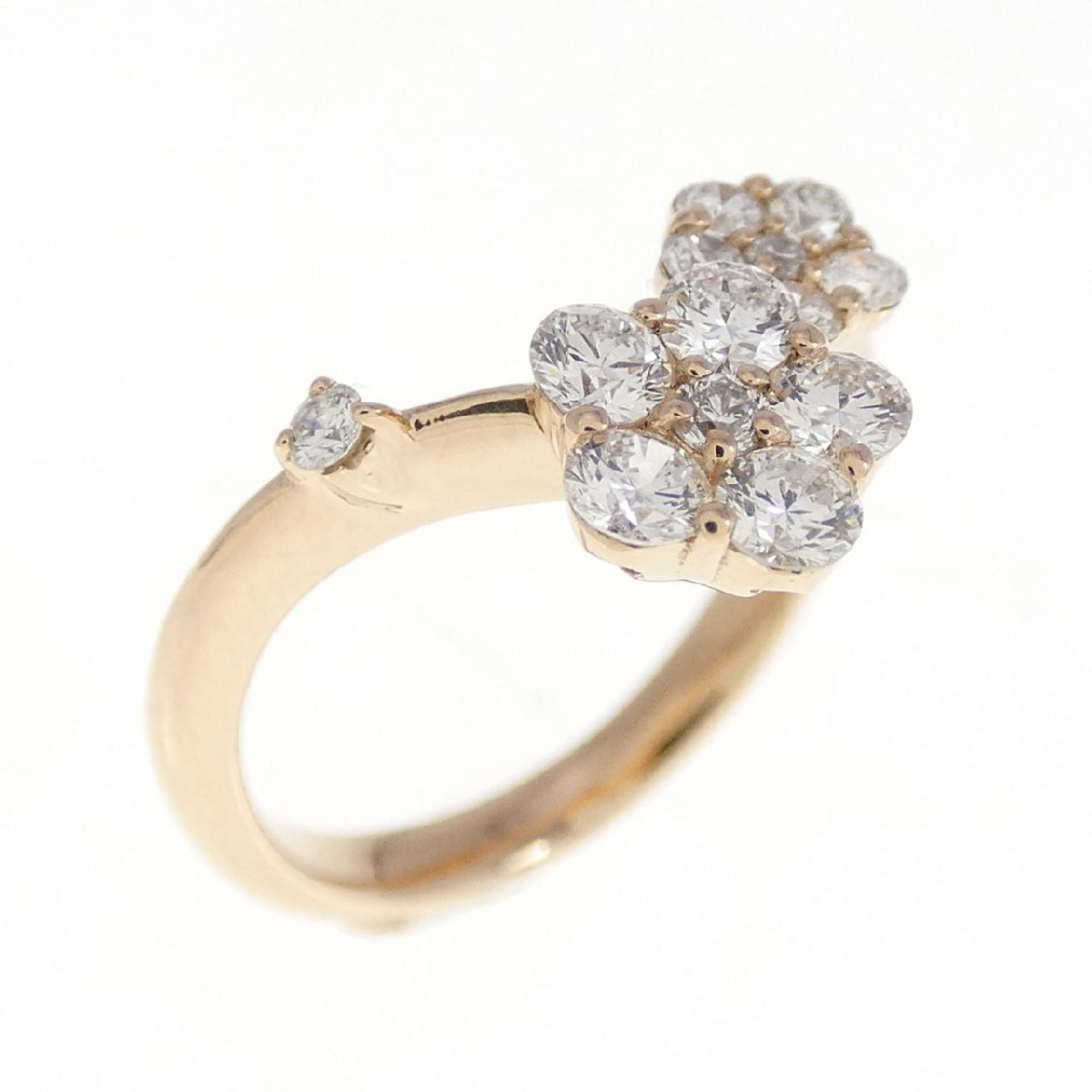 クリアに輝くダイヤモンドがお花型にセッティング。指元を愛らしく飾ってくれるジュエリーです。