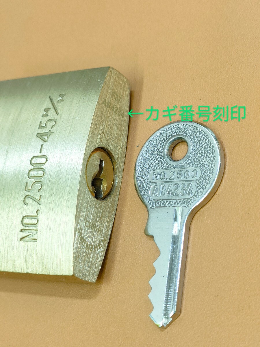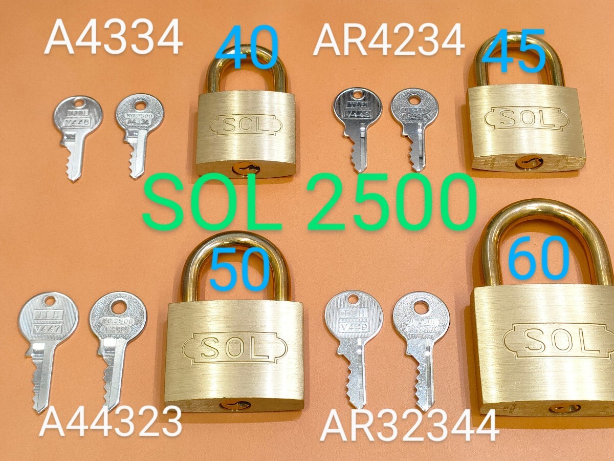 SOL、南京錠、合鍵1本【AR4234】 同一キー、ソル、No.2500-45mm、AR4234番、ネコポス便匿名無料配送、sol、カギ、南京錠カギ