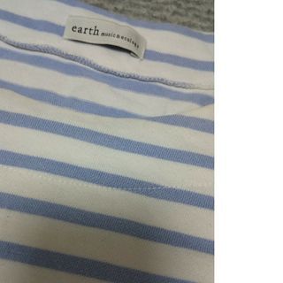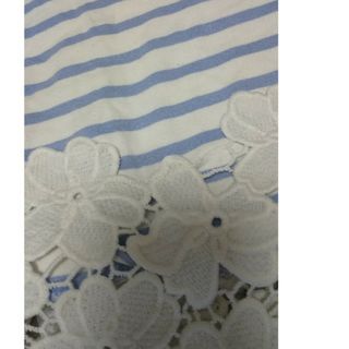 earth music&ecology 水色ボーダー半袖トップス 花柄レース裾 F アースミュージック&エコロジー トップス 服