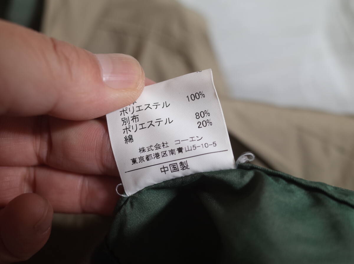 素材:ポリエステル、別布・ポリエステル80%綿20%
