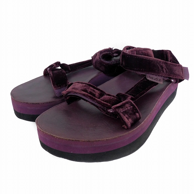 テバ Teva サンダル ストラップ 厚底 ベロア 無地 23 ボルドー 靴 シューズ レディース