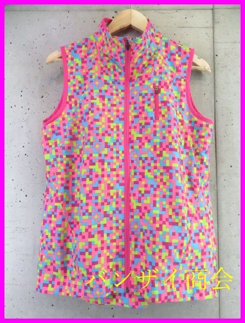 6050b5◆美品です◆UNDER ARMOUR アンダーアーマー 総柄 裏地メッシュ フルジップ ベスト LG/ゴルフジャケット/ポロシャツ/ジャージ/女性