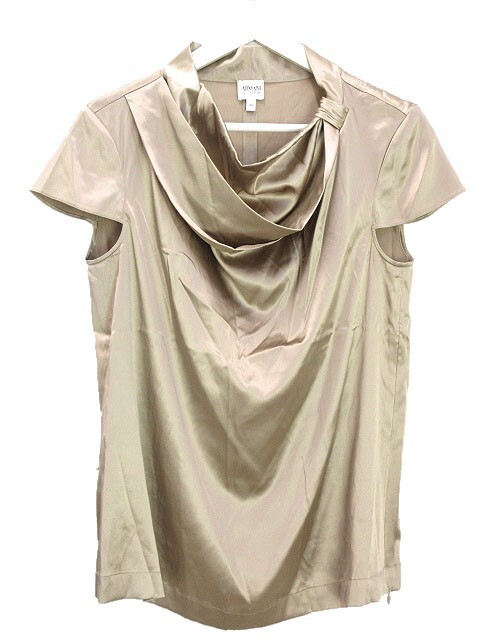 アルマーニ コレツィオーニ ARMANI COLLEZIONI シルク ブラウス ドレープ 44 シャンパンゴールド 半袖 トップス ストレッチ レディース