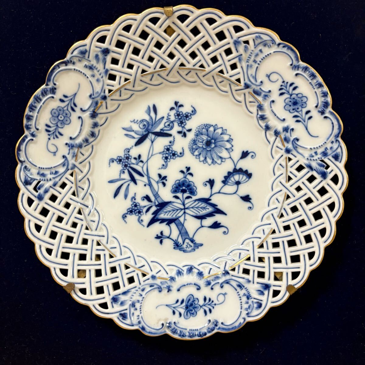 美しいマイセンのブルーオニオンの透かしプレートです。