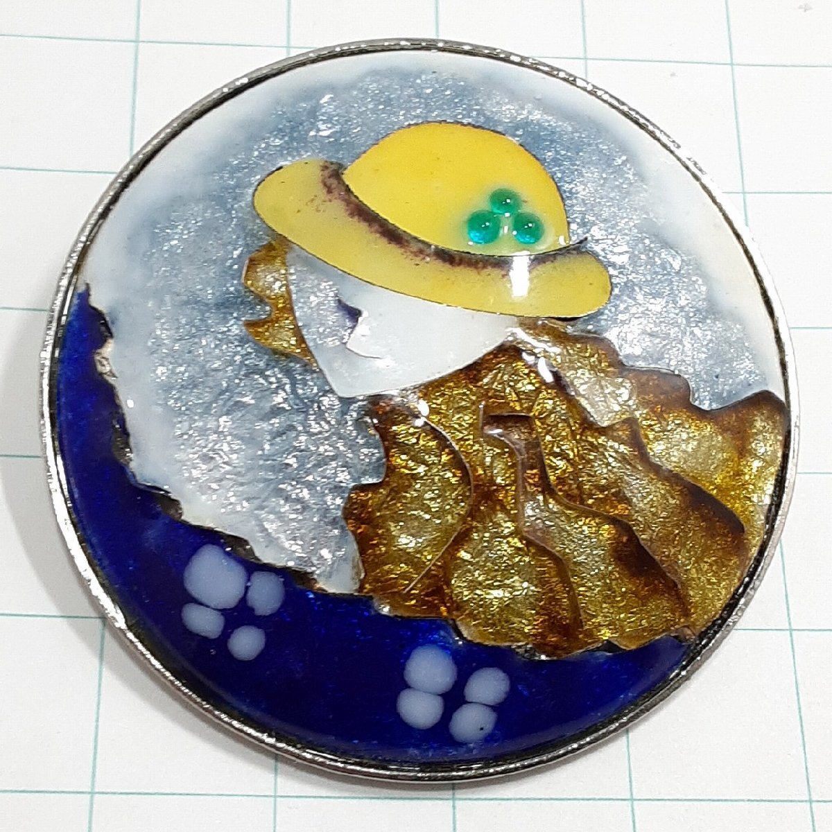送料無料)ビンテージ☆七宝焼き 少女モチーフ☆アンティーク ブローチ A29437