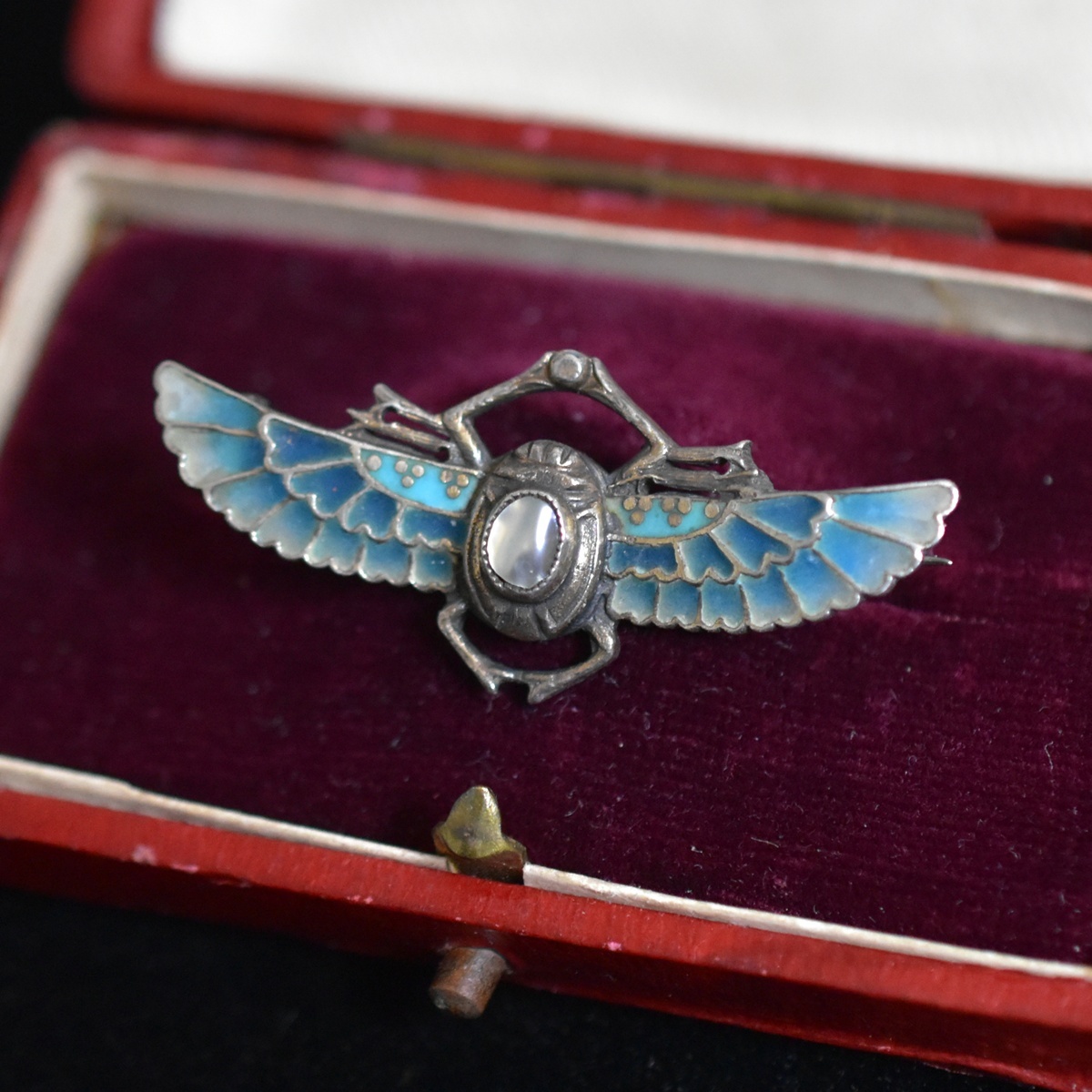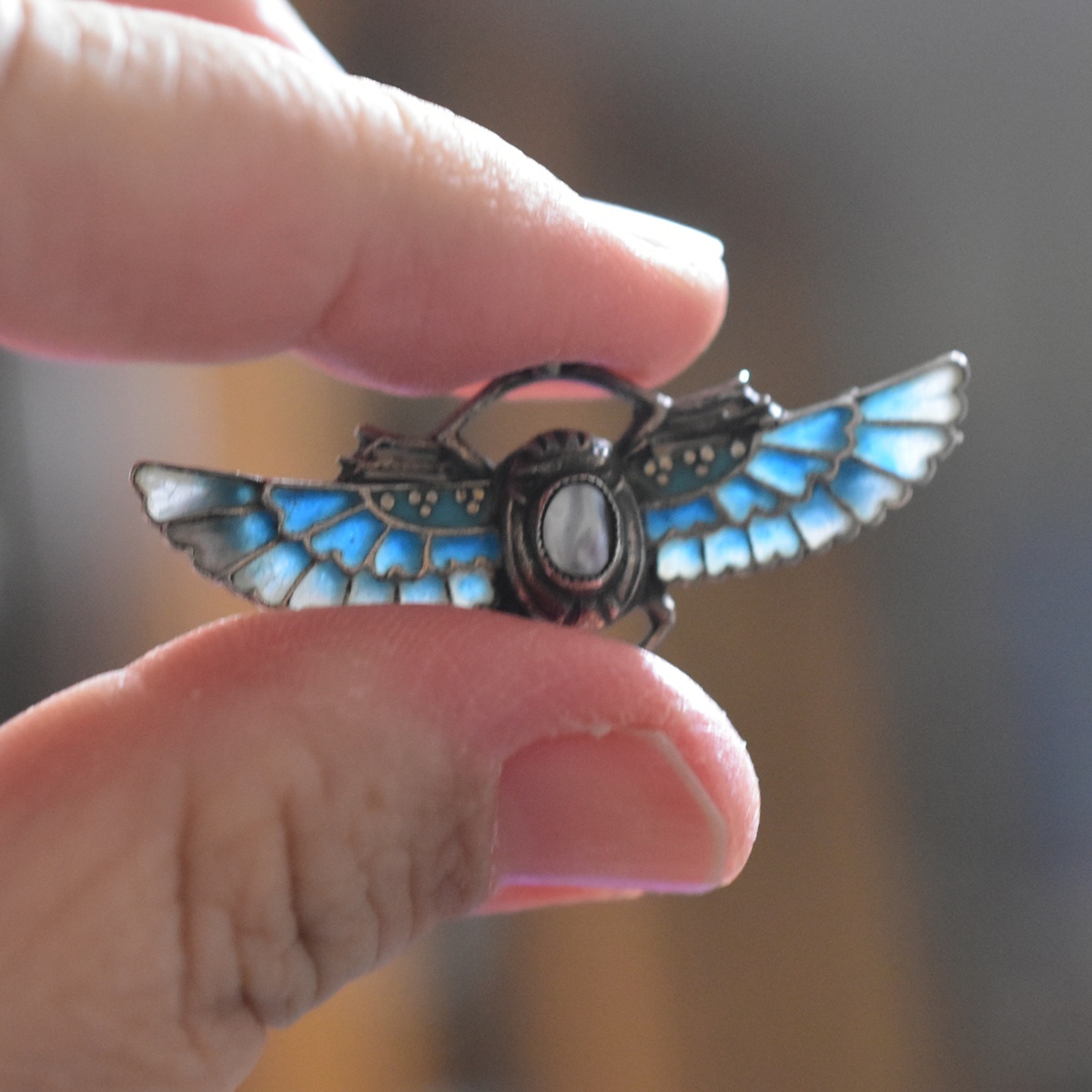 アンティーク エジプト コガネムシのプリカジュールエナメルとマベパールの銀製ブローチ 本物保証 銀製刻印 エナメル完品