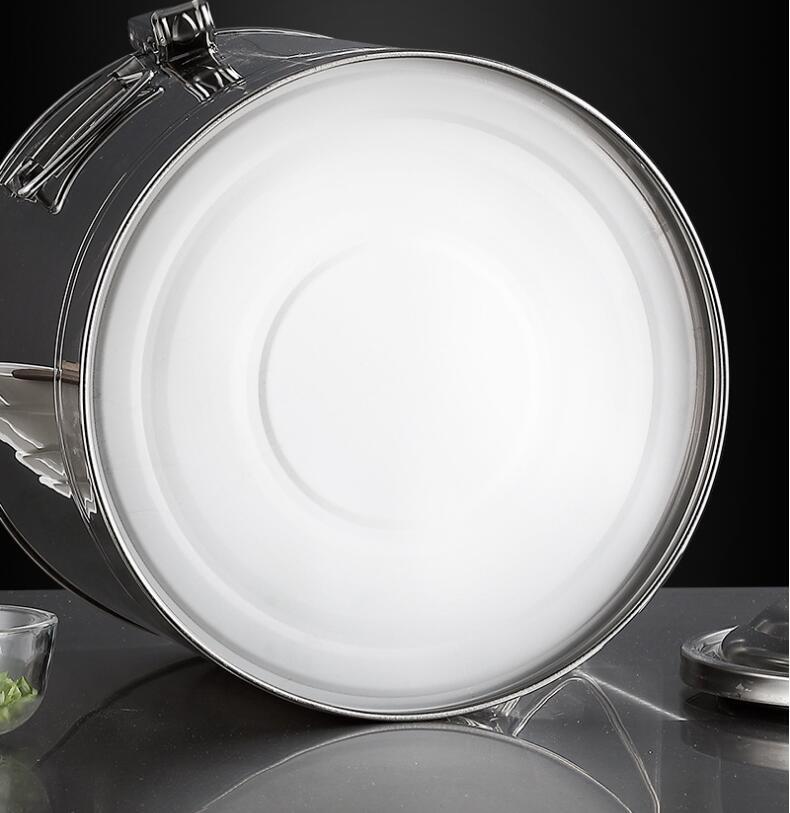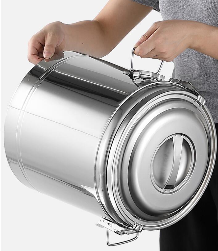 【保温保冷ステンレス鍋】スチール冷却ボックス、鏡面技術、明るい鏡面、お手入れ簡単、快適な手触り、断熱と焦げ防止、省力化。 蓋とバレル本体はバックルで留めることで倒れずに立ち位置が取れるので使い勝手が良く、蓋の置き場所に迷う心配もありません。