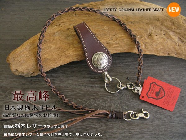 栃木レザー 日本製 本牛革 こげ茶 トップ付き皮ひも レザーロープ こげ茶 新品 ハンドメイド 約50cm ウォレットチェーン