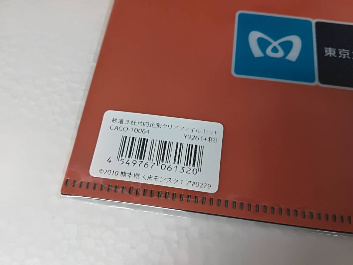 ■未使用 熊本県 くまモンスクエア 2010 鉄道3社共同企画 熊本鉄道/肥薩おれんじ鉄道/東京メトロ A4 クリアファイル 3種セット+A5ファイル
