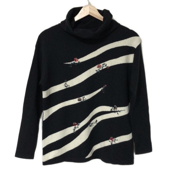 ハナエモリ HANAE MORI 長袖セーター/ニット サイズ38 M - 黒×アイボリー×マルチ レディース 美品 トップス