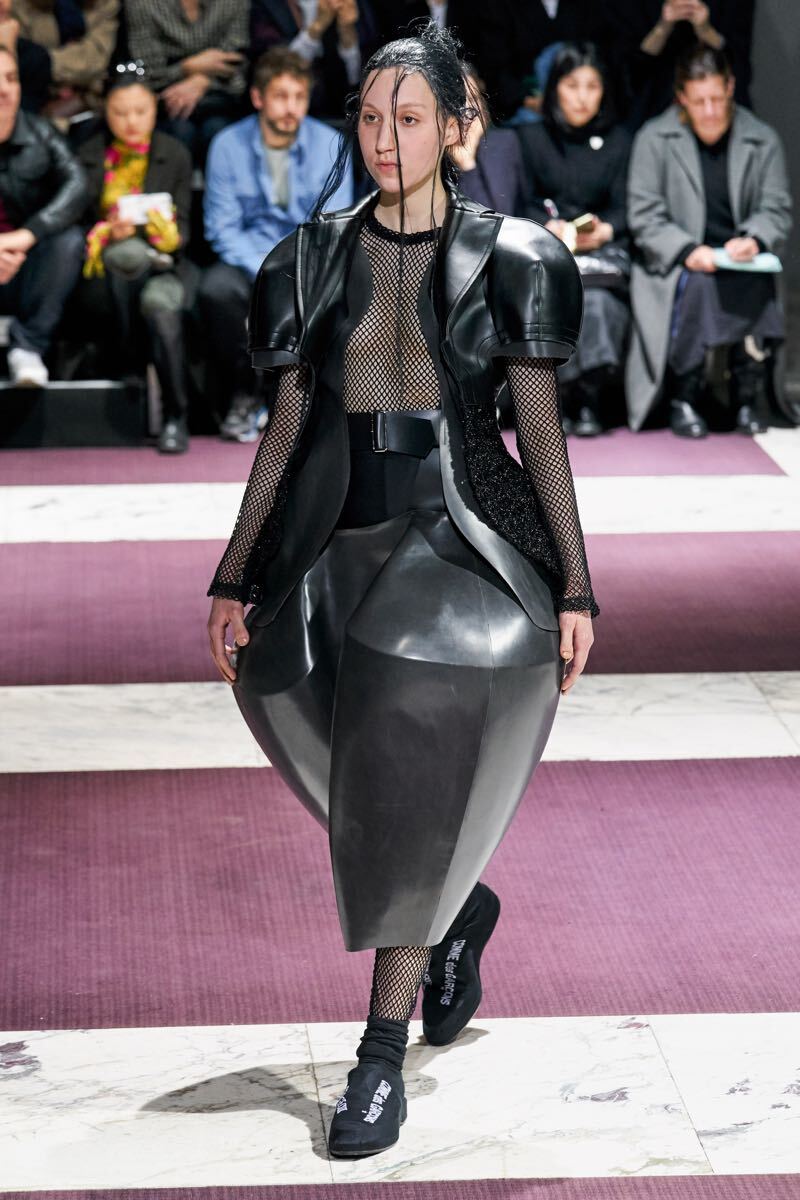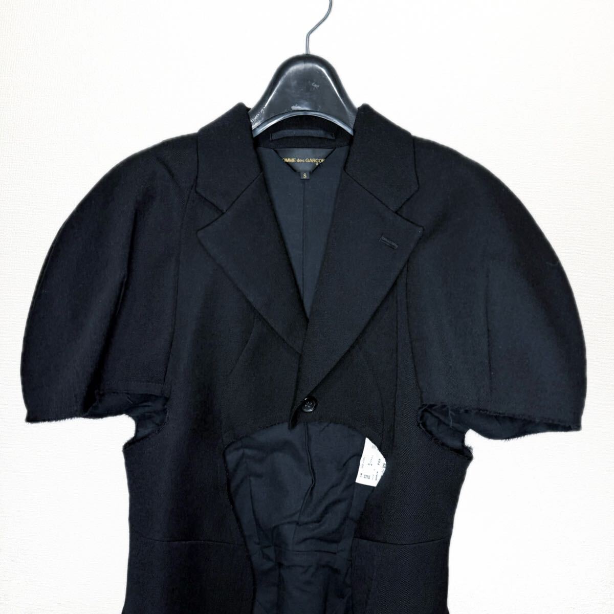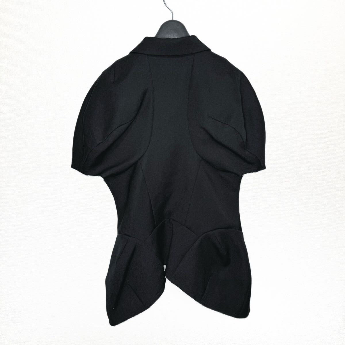 コムデギャルソン 2019-2020AW “THE GATHERING OF SHADOWS” パワーショルダージャケットです。一つのルックの中で様々なパーツを組み合わせることが一つのテーマだったシーズンで、特に肩を強調した形のジャケットや付け袖が印象的でした。こちらはショーで複数回登場したフェイクレザーのジャケットと同型のウールギャバ版となります。
