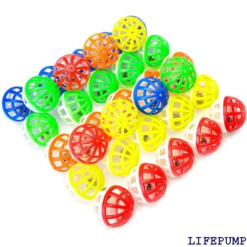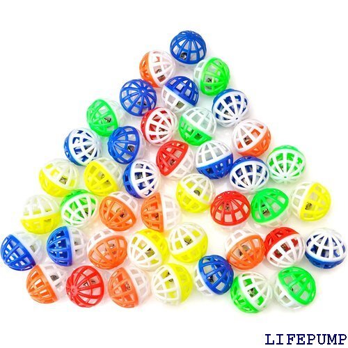 Chiwava 45個 4cm 猫用おもちゃボール ベル付きプラスチックラティスジングルボール 子猫チェイスパウンスラトルおもちゃ アソートカラー 13503