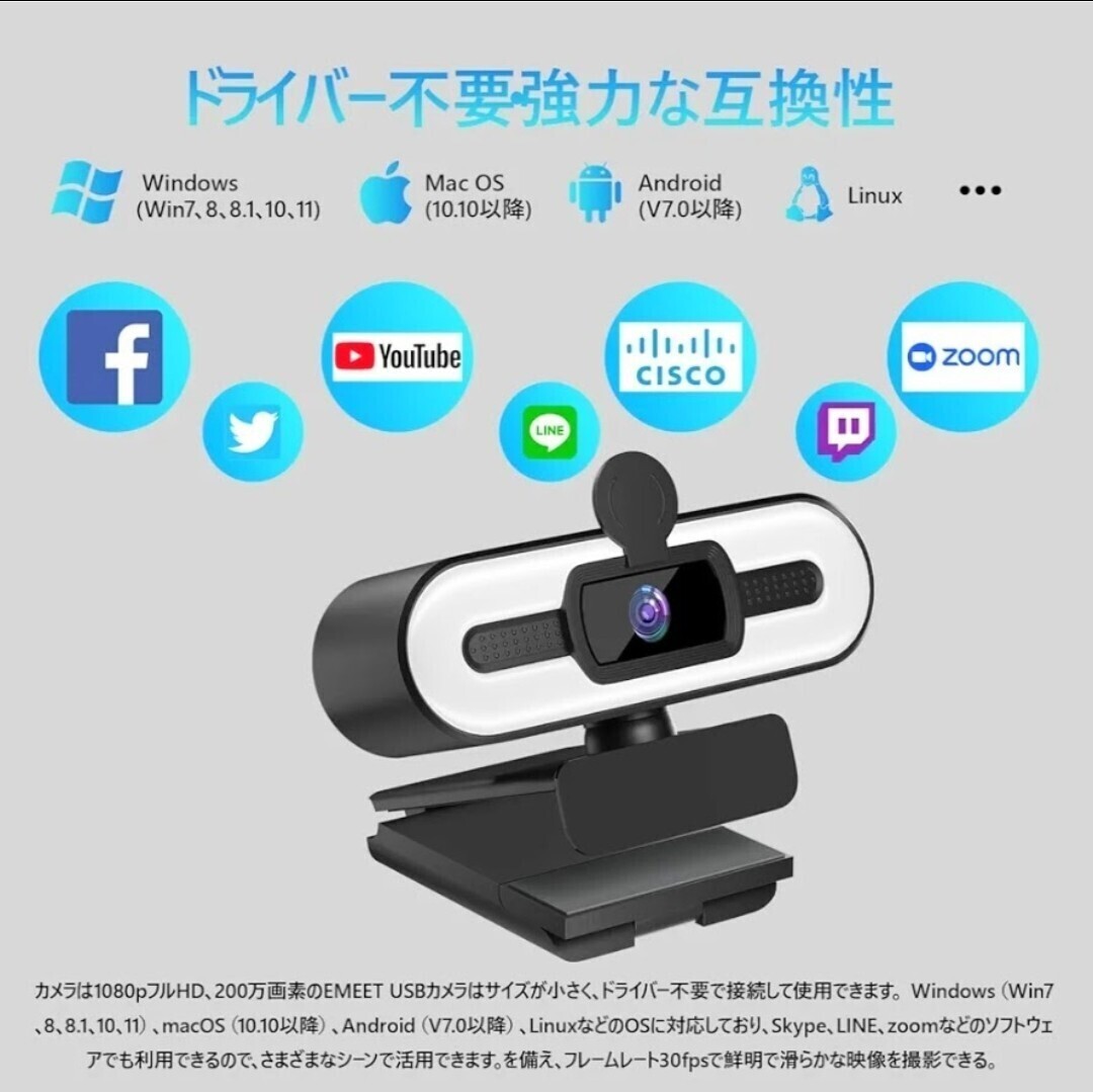 webカメラ ウェブカメラpcカメラ 1080P フルHD画質200万画素 usbカメラ30FPS HDR画像補正技術 web camera ストリーミング向け pc カメラ 自動光補正 外付けウェブカメラ ライブ配信用 在宅勤務/ビデオ通話/テレワーク/オンライン授業・会議 webcam プラグ&プレイ