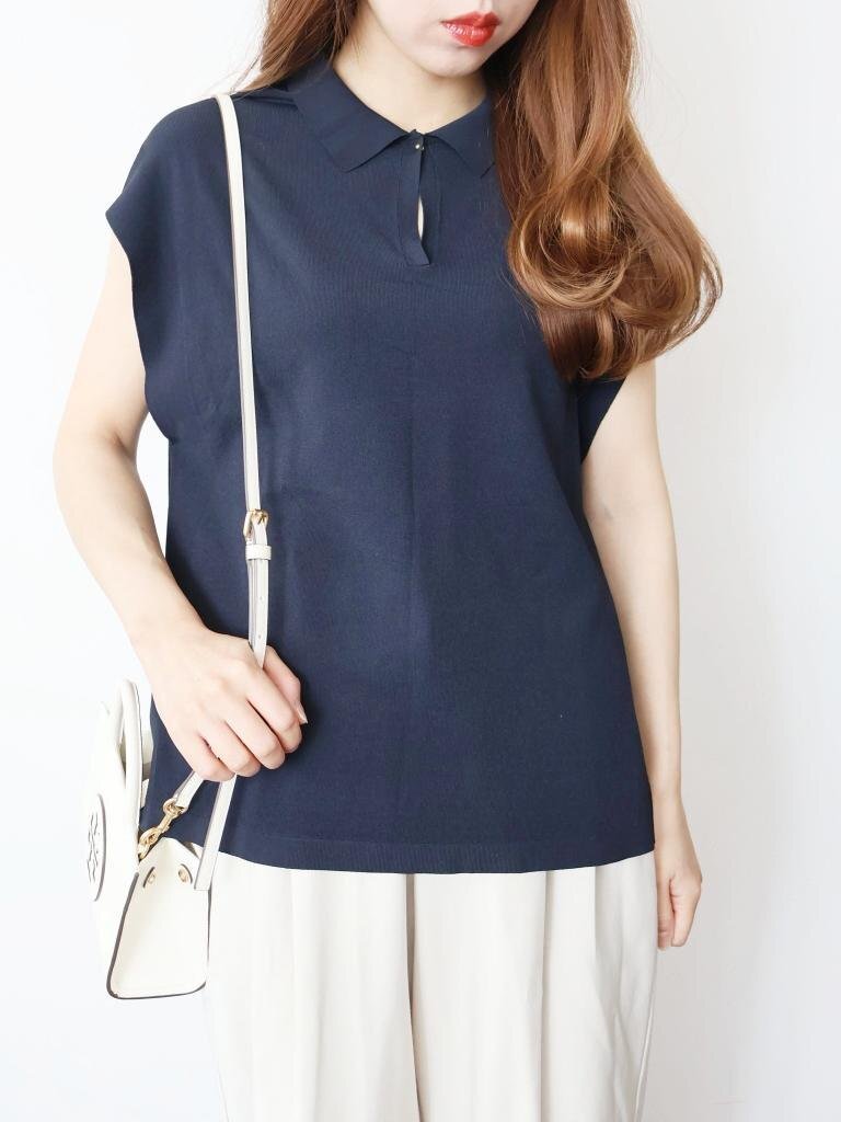 【送料込】DES PRES (トゥモローランド) マットレーヨンストレッチスキッパープルオーバー F(フリー) ネイビー 綺麗め 6452715