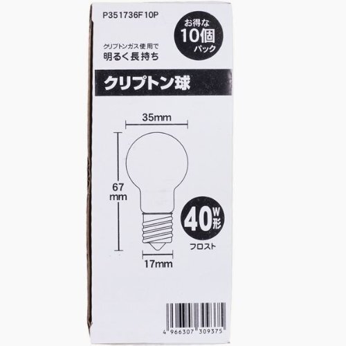 | 商品名 | ヤザワ 省エネクリプトン球40W形フロスト10P P351736F10P |