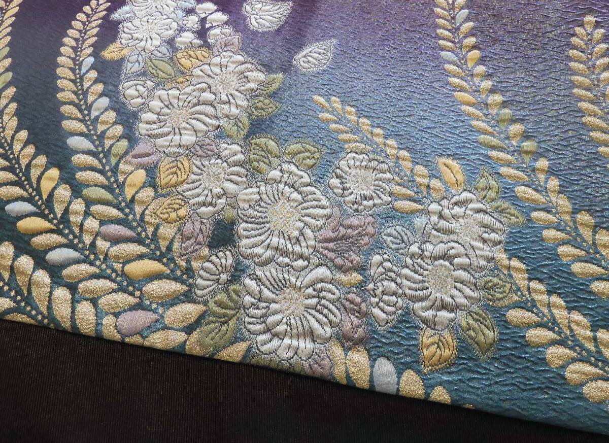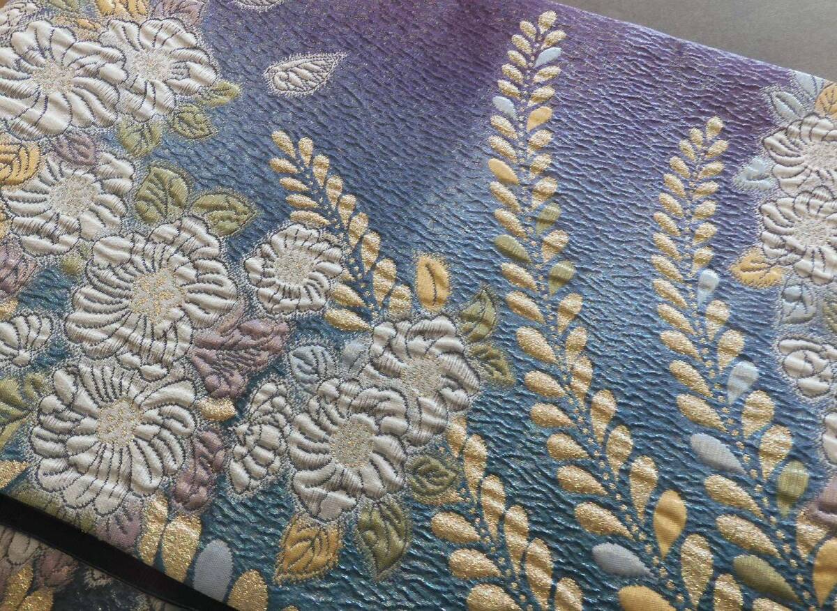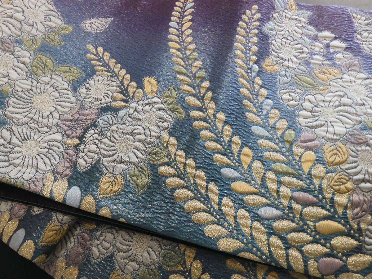 美しい金箔が光によって輝き方が異なり、とてもシックですが華やかさのある袋帯です。