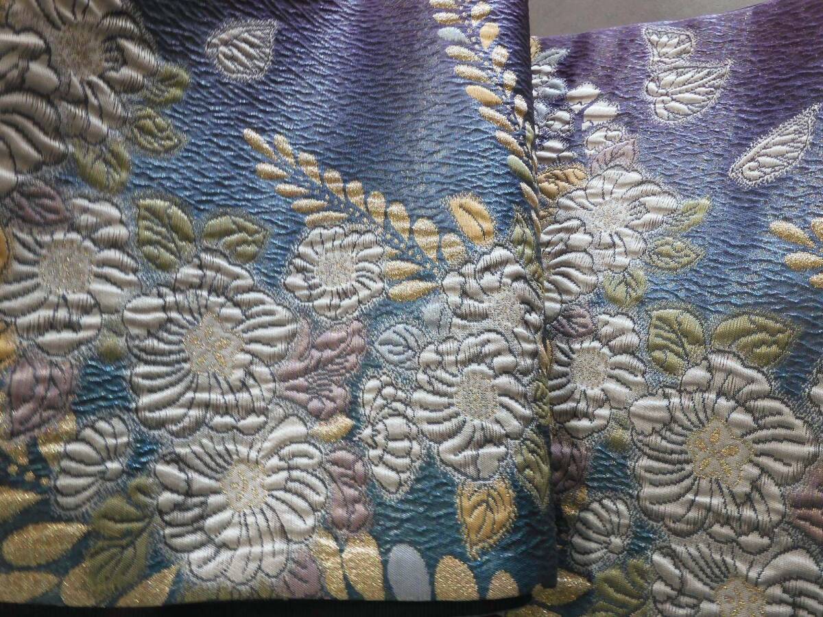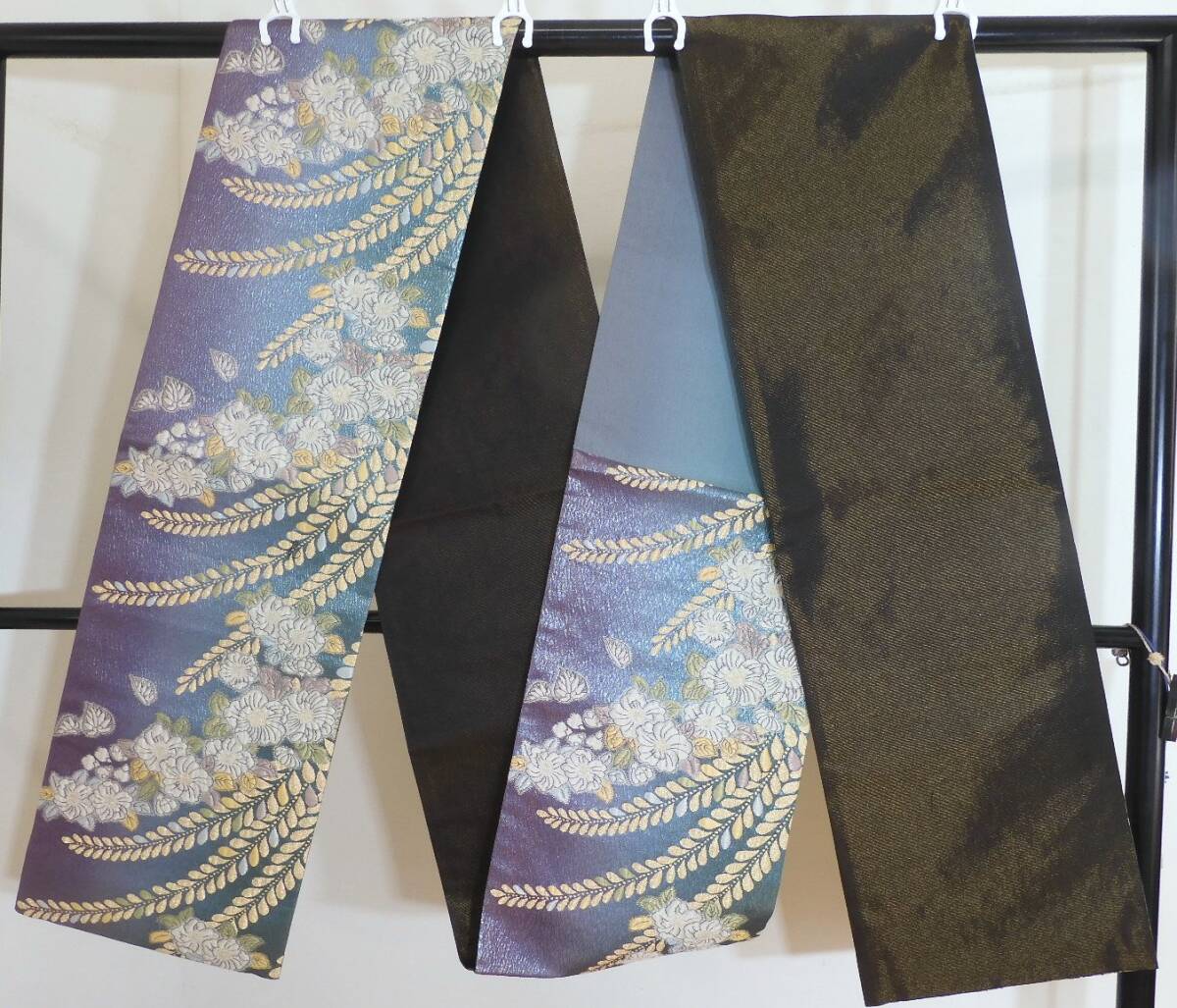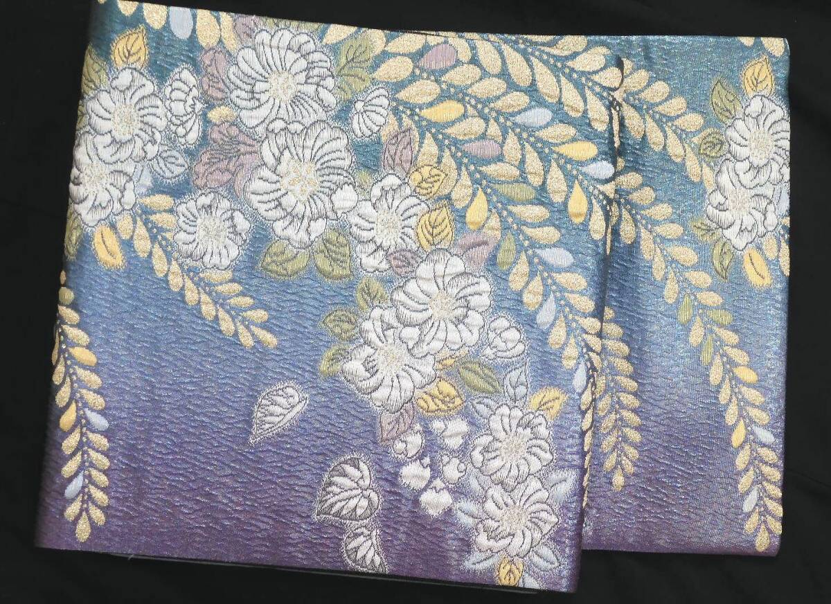 美しい金箔が光によって輝き方が異なり、とてもシックですが華やかさのある袋帯です。
