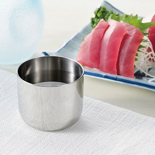 "外面のミラー仕上げが美しい、ステンレス製のぐい呑みです。