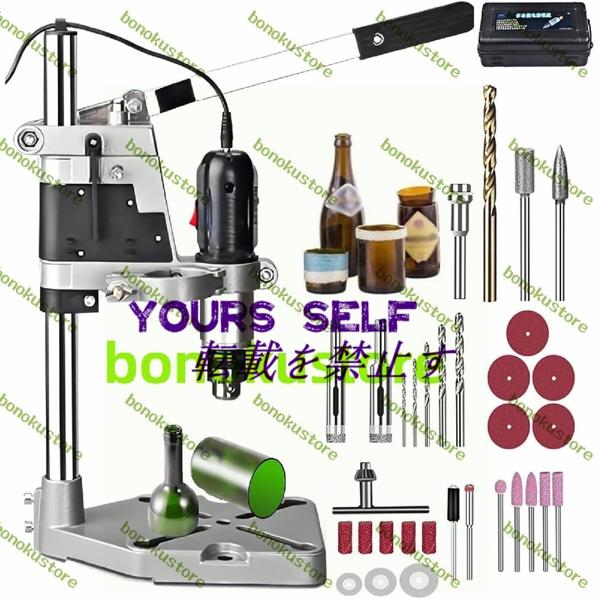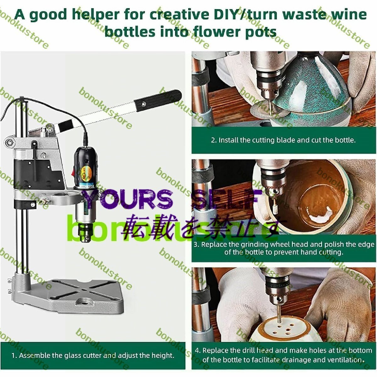 ポータブルガラスボトル切断機、72W電動セラミックパンチカッター、ドリルスタンド付き、5-8000r/minガラス切断ツール、セラミック、ガラス、ワインボトル用