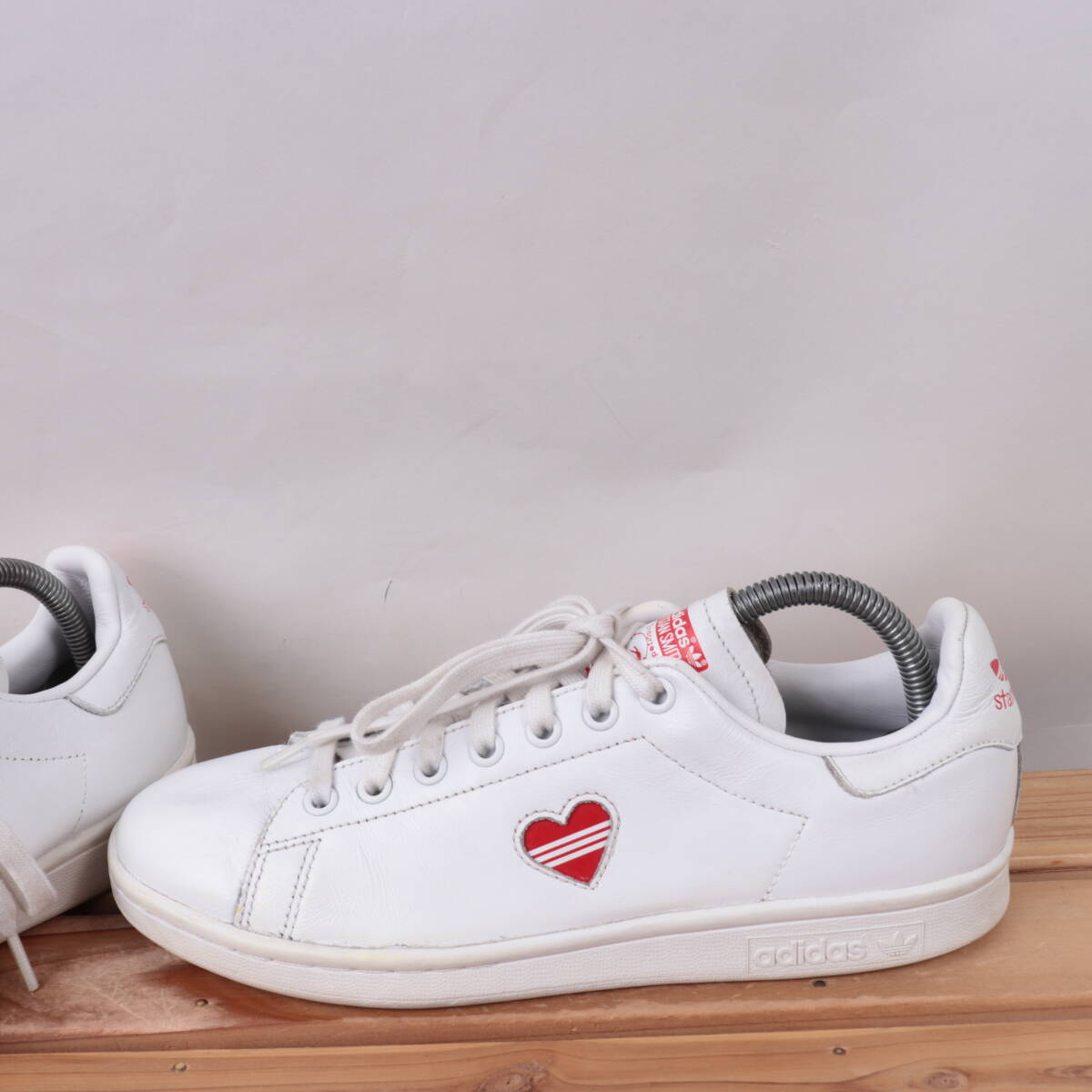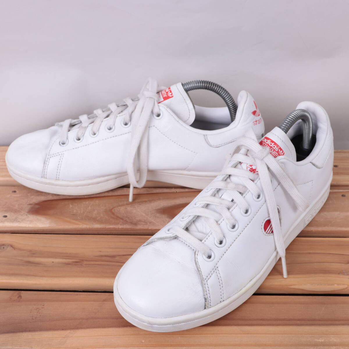z9886 アディダス スタンスミス US8 1/2 25.5cm/白 ホワイト 赤 ハート adidas STANSMITH レディース スニーカー 中古