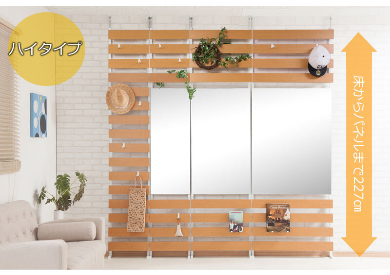 ■商品について/立体的にラダーを組み上げた突っ張り式ラダーラック。奥行感を出すことで陰影の立体感を演出、他にはない壁面ラダーラックはラダーだけでなくミラータイプも展開。ミラータイプを壁面いっぱいに並べればリゾートホテルのような感覚に。玄関やリビング、キッチンなどあらゆるシーンに。
