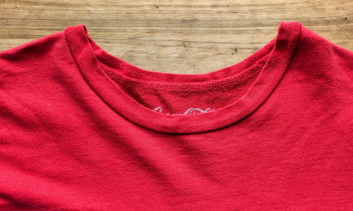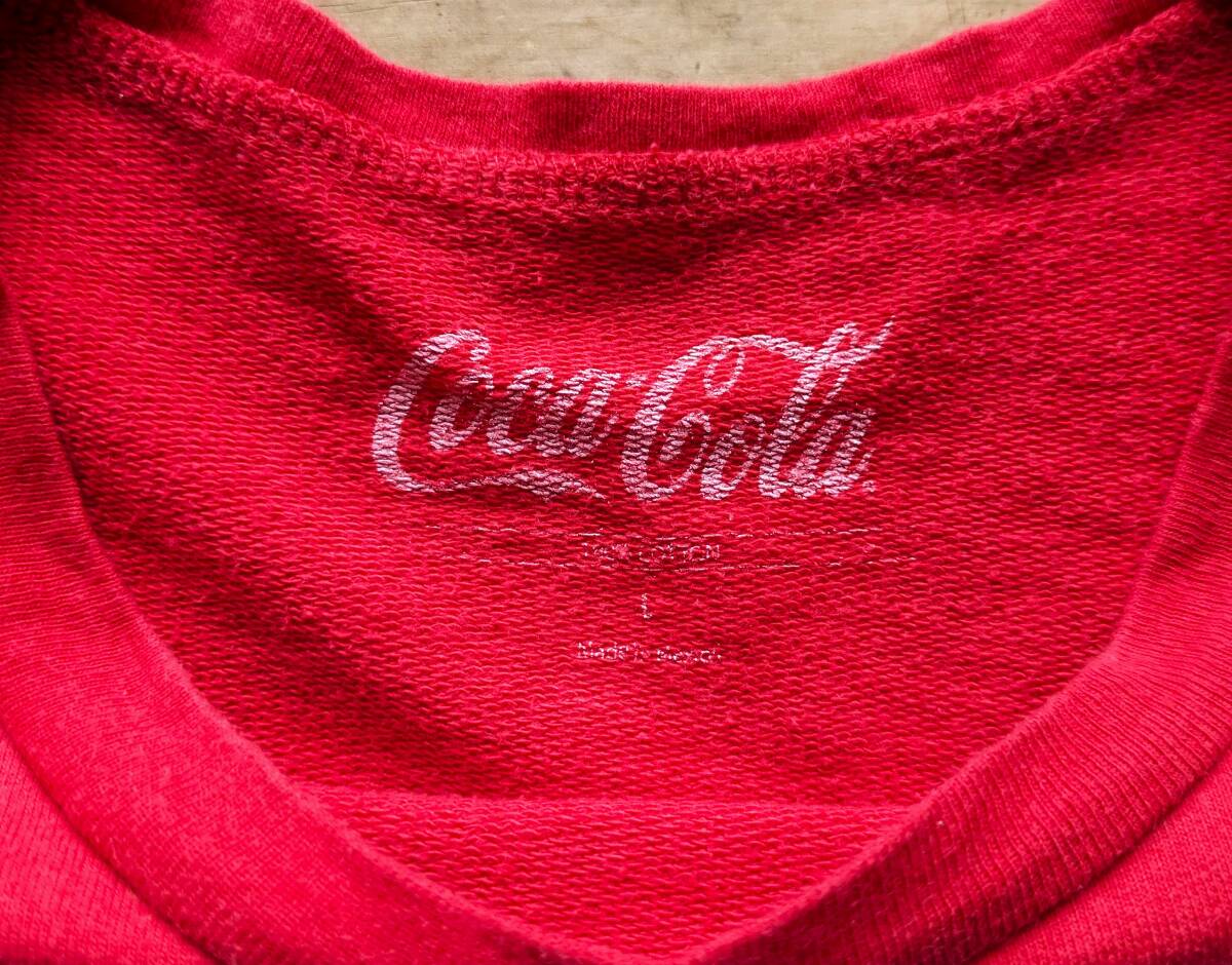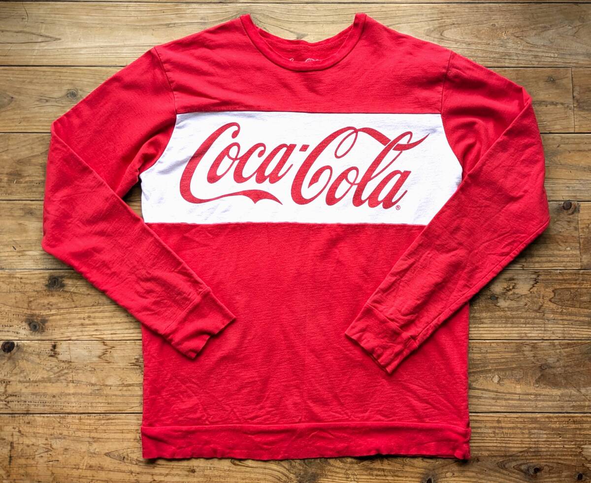 送料無料♪90’s コカコーラ スウェットシャツ 切替カットソー 染込みロゴ 100%コットン size L 赤×白 メキシコ製 USED古着 OLD Coca-Cola