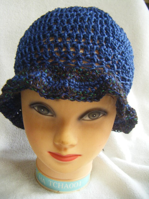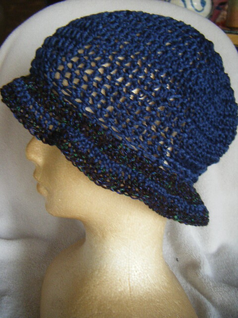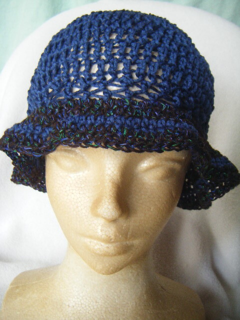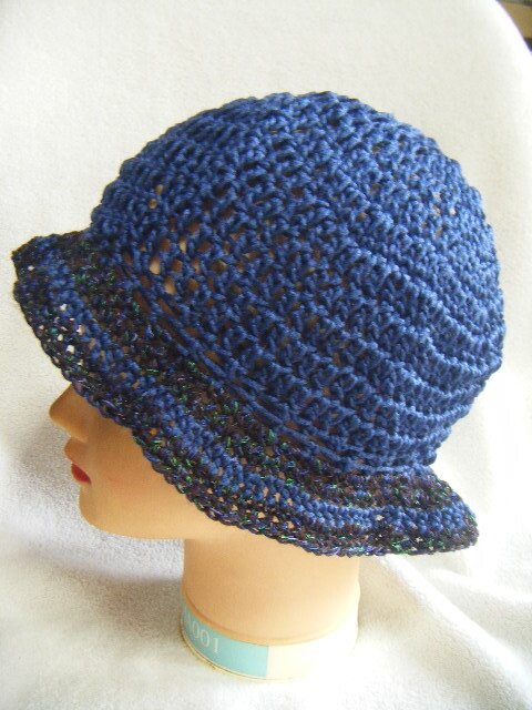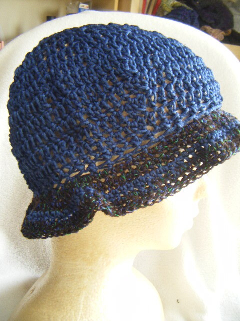 春~秋*手編み男女兼用キャップ*ツバ付き*紺*ツバ部分は色違い*ウール。キュプラ。ナイロン*小さくまとめて携帯可   31