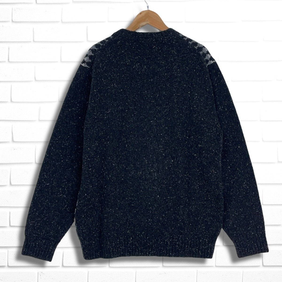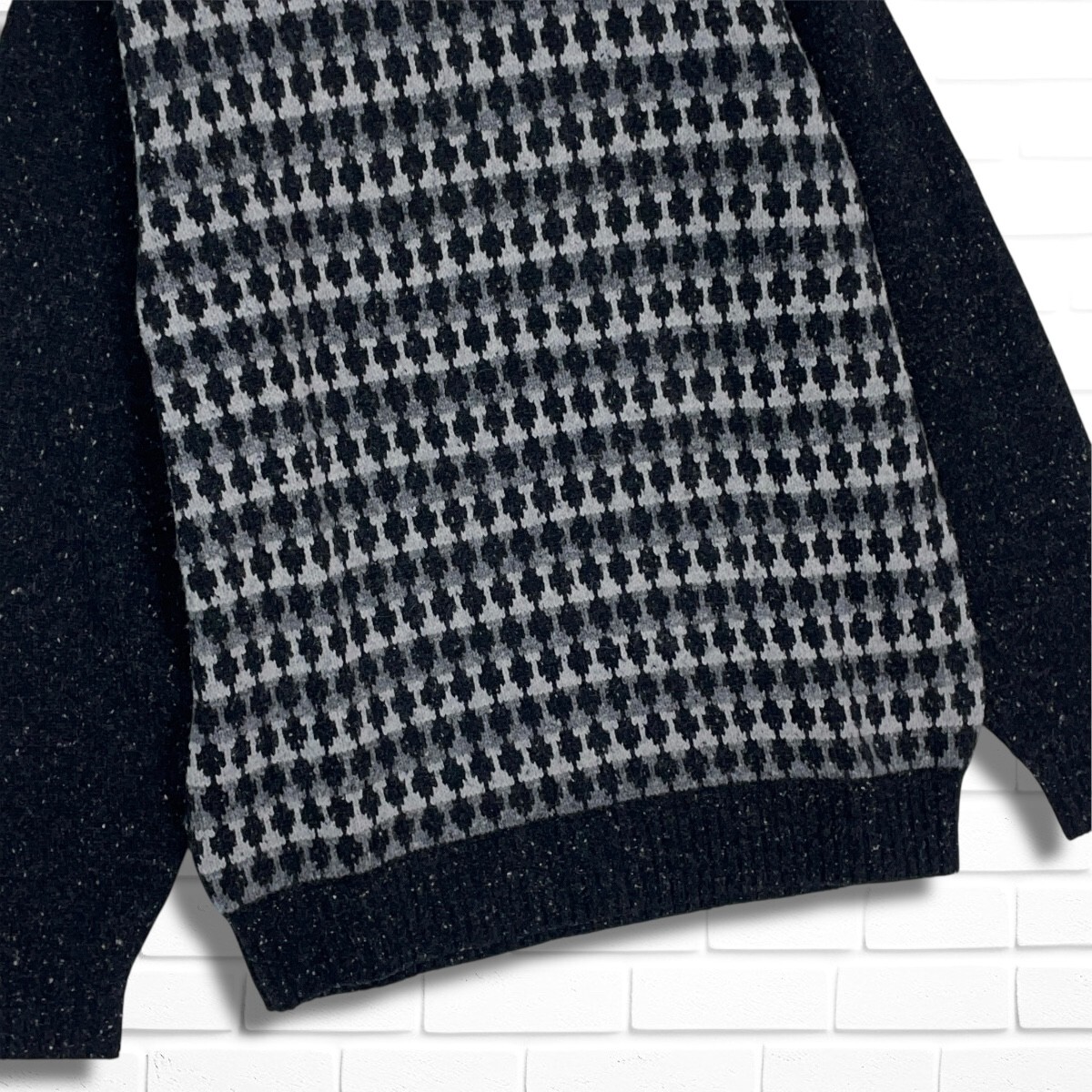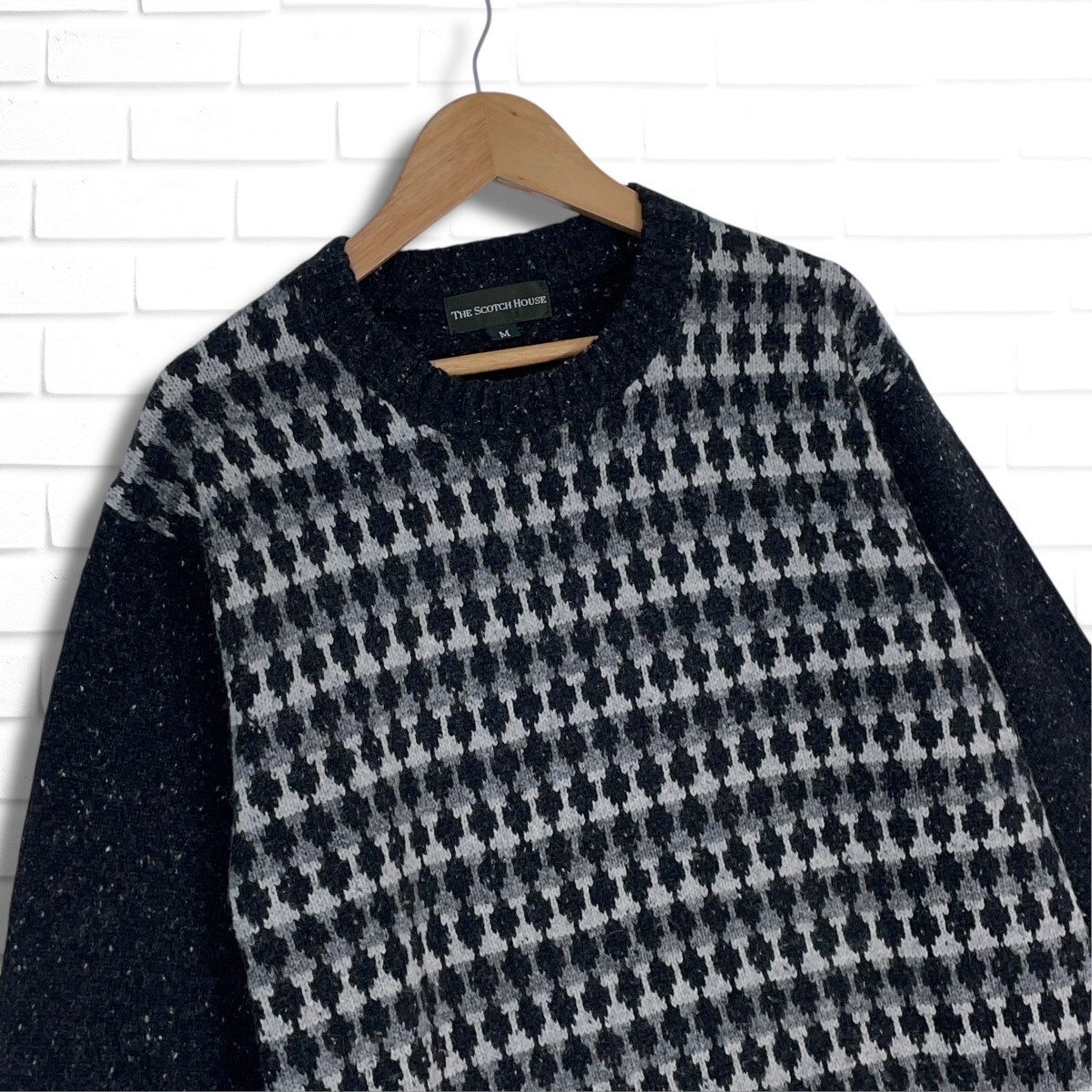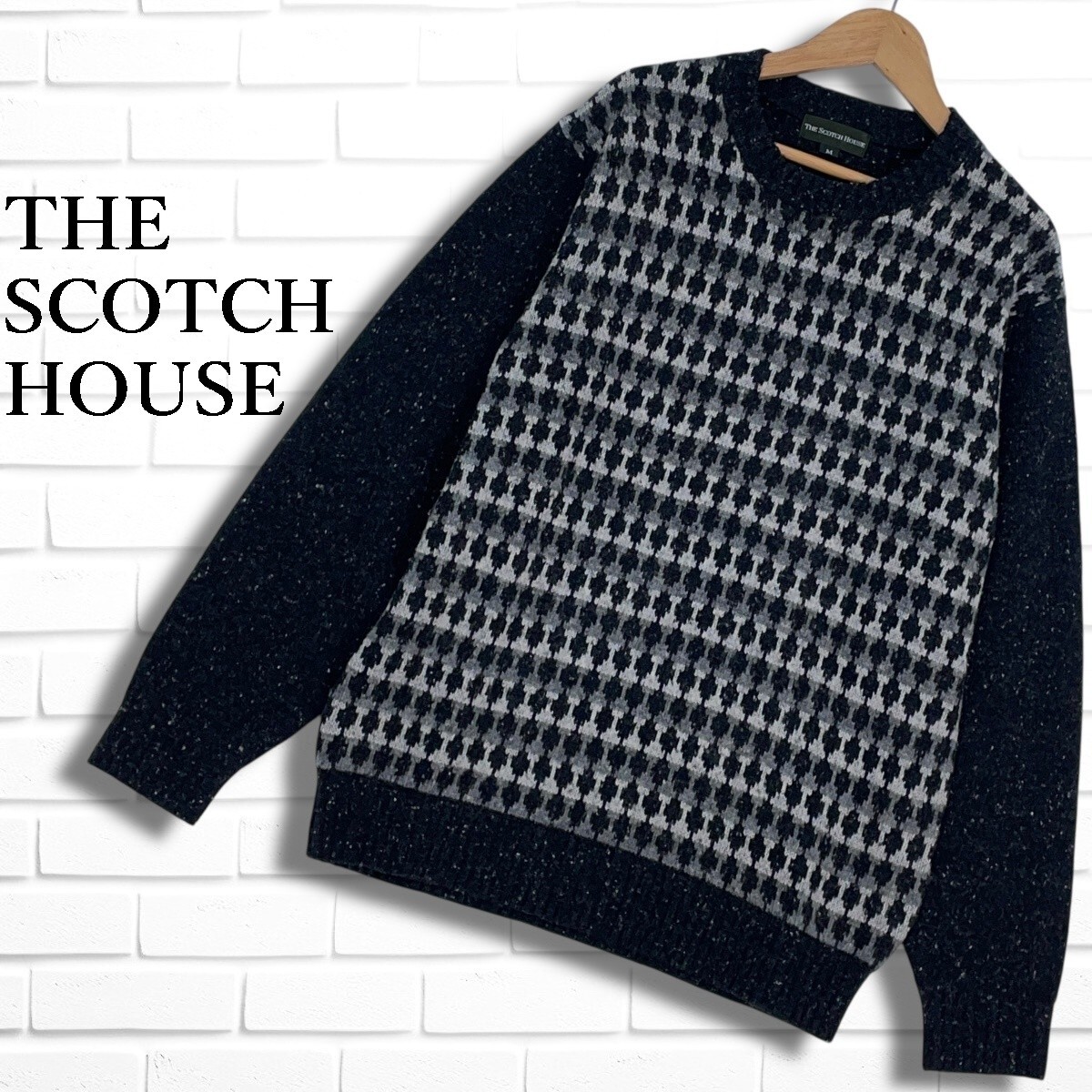 ◆美品◆ THE SCOTCH HOUSE スコッチハウス ウール ニット 長袖 セーター 黒 ブラック グレー メンズ M ◆送料無料◆ 1875F◇