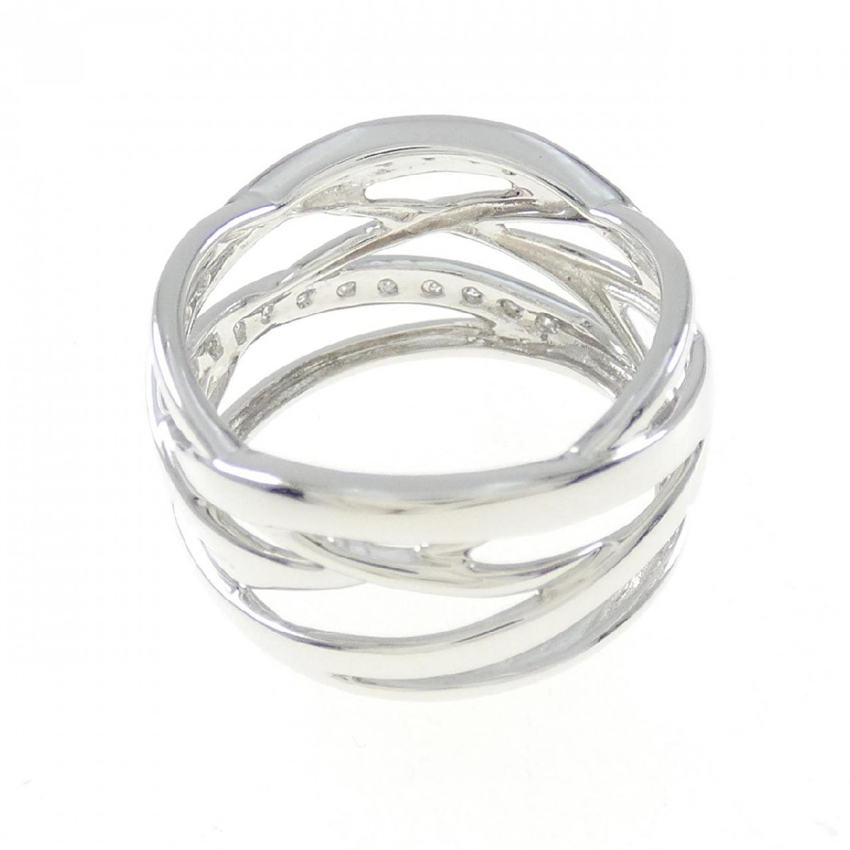 クリアに煌めくダイヤモンドをあしらったリング。何重にも重ねたようなリングアームが指元を品良く飾ります。