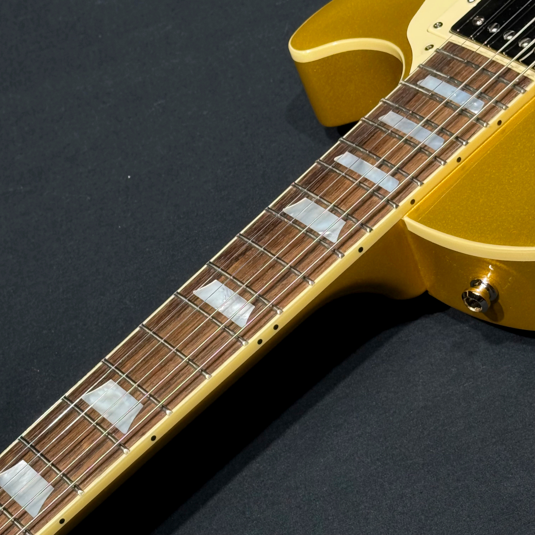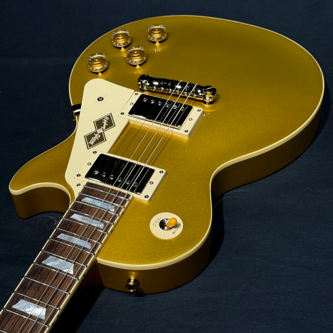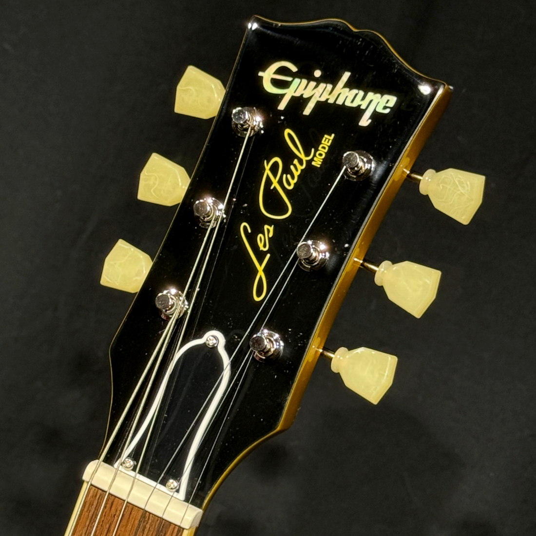 ヘッド面には1955年製と同様に若干下側に配置されたマザーオブパール・エピフォンロゴがあしらわれ、
