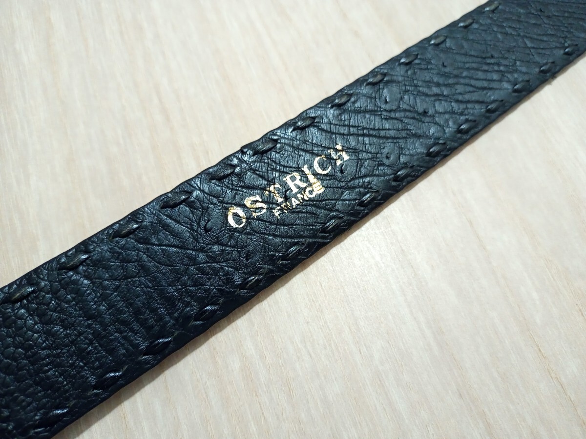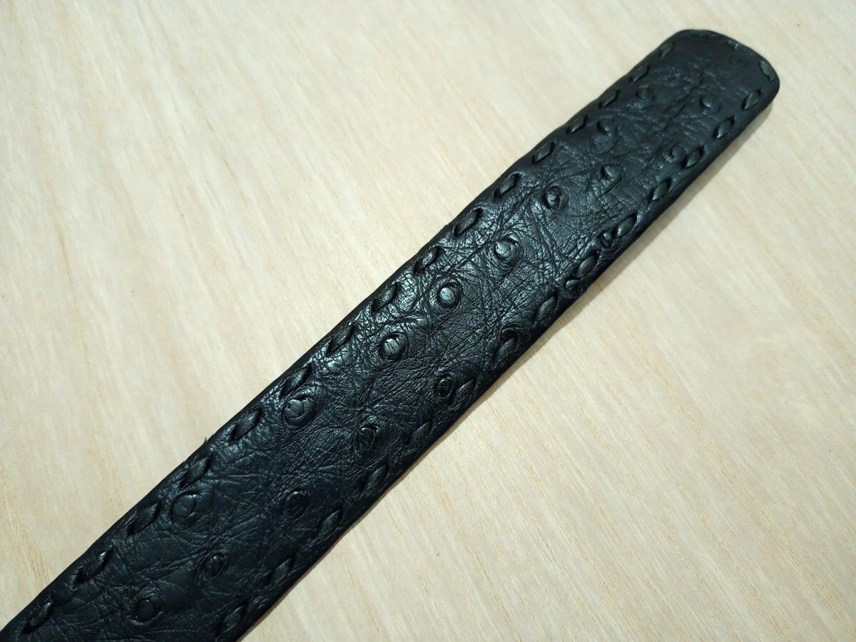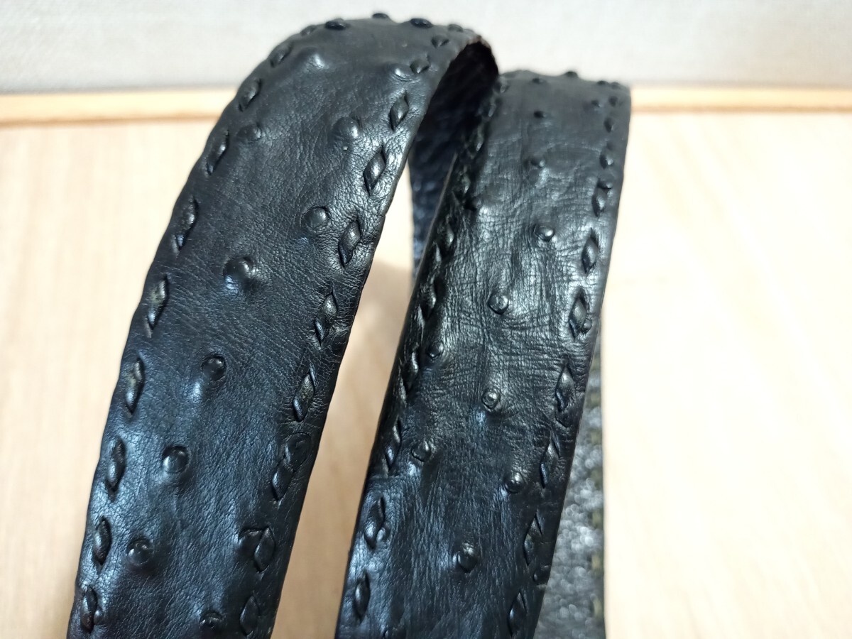 オーストリッチ ステッチベルト フィットバックル 全長103cm 35mm幅 黒色