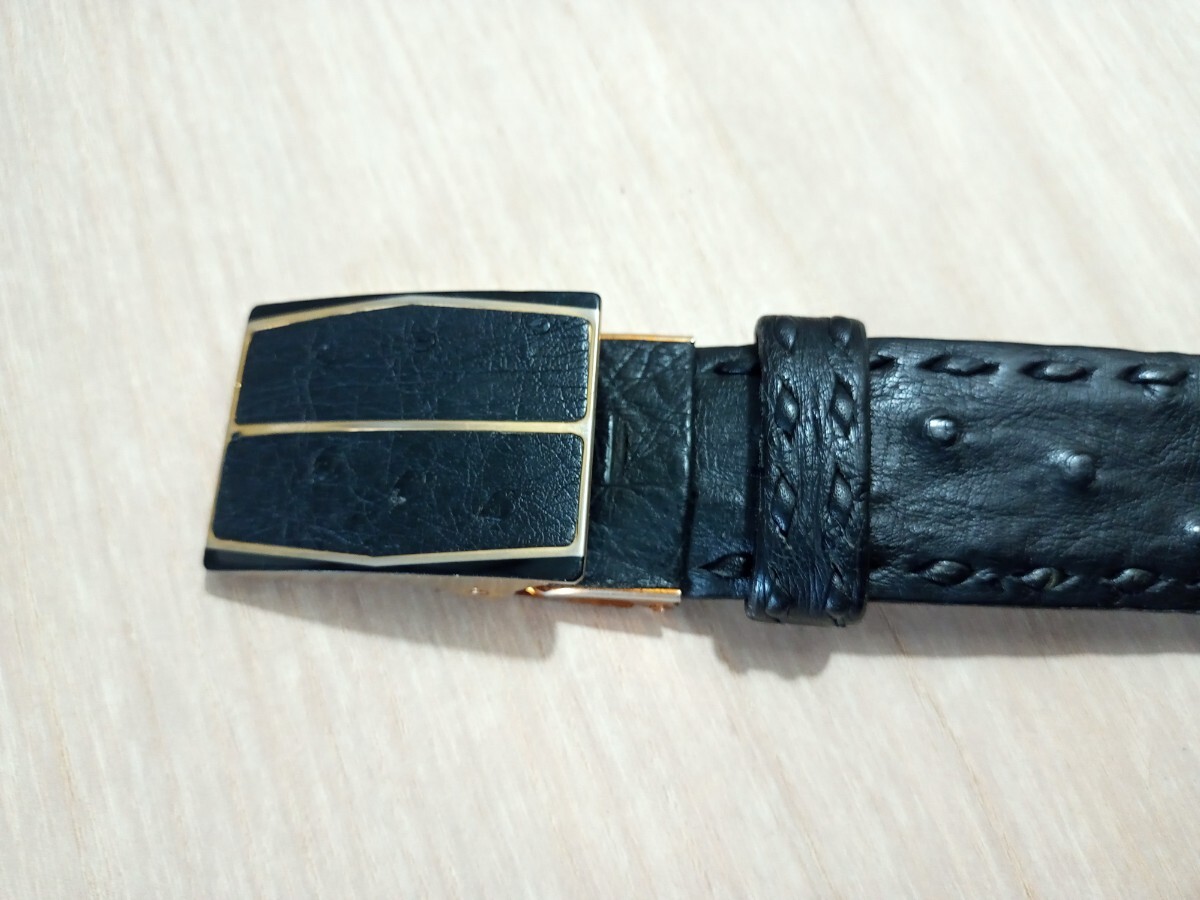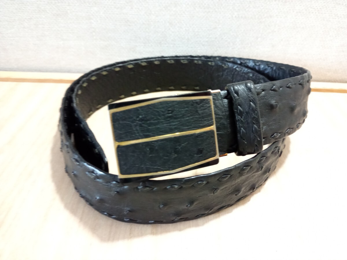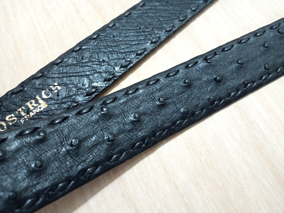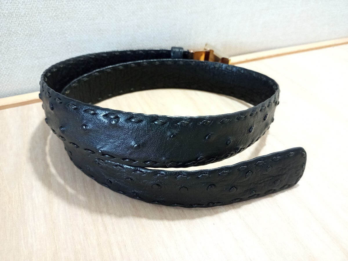 オーストリッチ ステッチベルト フィットバックル 全長103cm 35mm幅 黒色