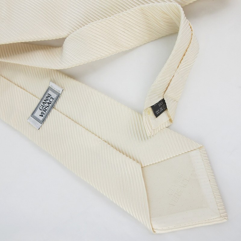 ジャンニヴェルサーチ ヴェルサーチェ GIANNI VERSACE ネクタイ レジメンタルストライプ オフホワイト 白 シルク 剣先幅9.5cm メンズ