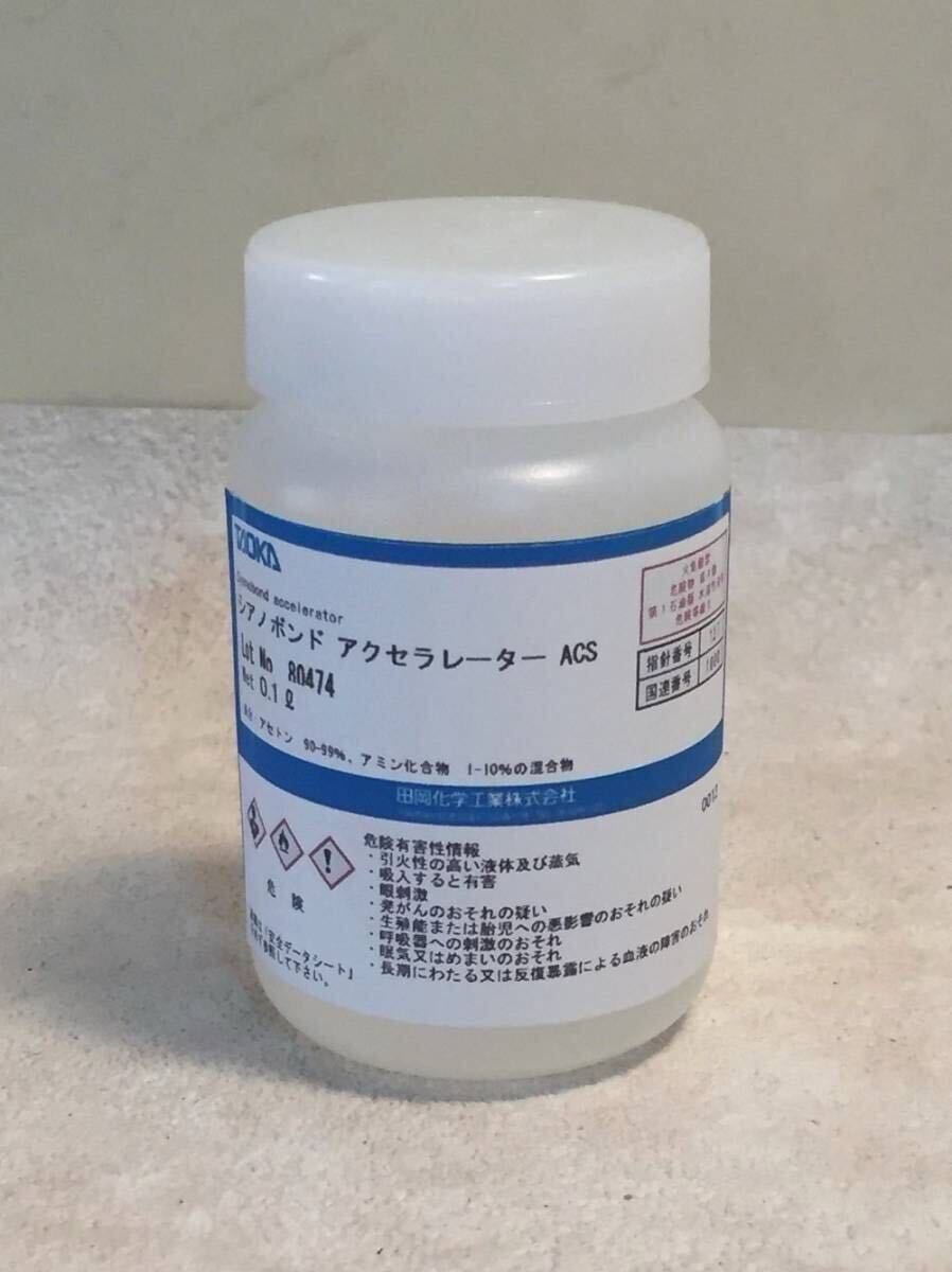 ●田岡化学製 シアノボンド純正のアクセラレータ(硬化促進材)です。 手で押さえておいて硬化促進剤を吹きかければ瞬時に固まります。 (100円均一で売っている小型のスプレーボトルに入れ替えてご使用ください。) ●PQタイプとは異なりアセトンを主成分としていますので、塗装面に付着した場合侵されることがありますので目立たぬ所でテストして使用してください。 ●ACSタイプは硬化後の強度が高いとメーカーからお聞きしています。 ●接着面が多孔質であったり、平滑でないような場合の接着や間隙充填接着、肉盛り接着を行うときに使用するシアノボンド専用の硬化促進材です。 ●使用しての感想は吹き付けても白化し難い様に思います。 ●換気をよくしてお使いください。 ●商品の性質上、ノークレーム・ノーリターンでお願いします。 ●本品の郵送は規格外の厚さとなりますので、ポスト投函はできません。郵便局窓口からの発送となります。土曜 日曜日の落札の場合に発送までの時間がかかる場合がございますがご理解お願い致します。 ●送料は定形外郵便で390円 です。 尚、到着までには土日祝祭日を除いて概ね5日を要しています。お急ぎの方は質問欄にでお問合せ下さい。 ●入金確認後24時間以内の発送を心掛けています。オークション終了後48時間以内にご連絡の頂けない方は不本意ではございますが「落札者都合で削除」させて頂きますのでご了承ください。