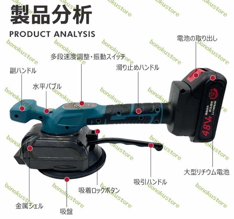 商品の説明---あなたが楽なタイル敷設ツールを探しているなら、これはまさにあなたが必要とするものです!本タイル振動工具を使用して、タイルはDIYによって、自分で簡単に貼れるのです。従来のハンマーと比べて、振動周波数は10000 r/minに達し、作業効率が大幅に向上し、タ