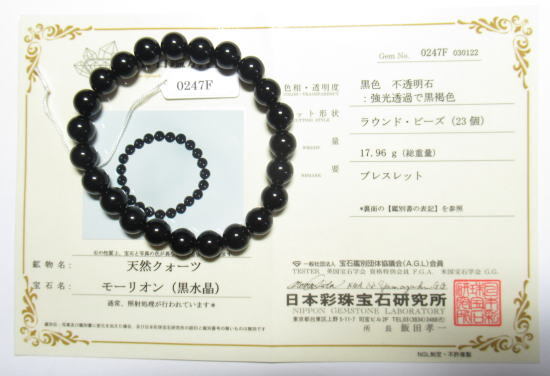 モリオンビーズをお買い上げのお客様に、鑑別書のコピー(モノクロ)を1枚お付けいたします(1種類につき1枚のみ)
