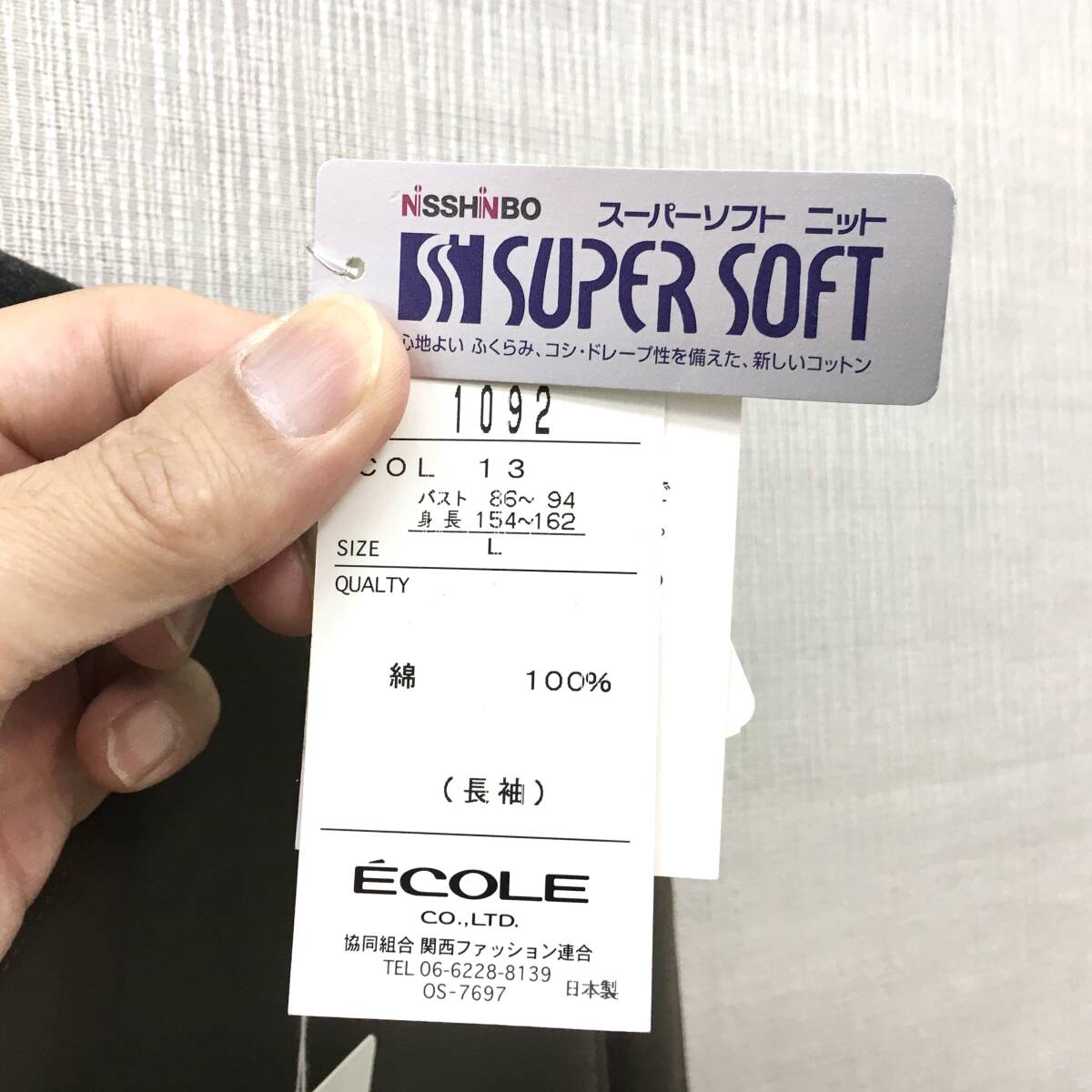 【新品】日本製 綿100% 極薄手 長袖 カットソー Lサイズ 送料無料 サラサラ 高伸縮素材 SZ天竺 婦人 日清紡 丸首