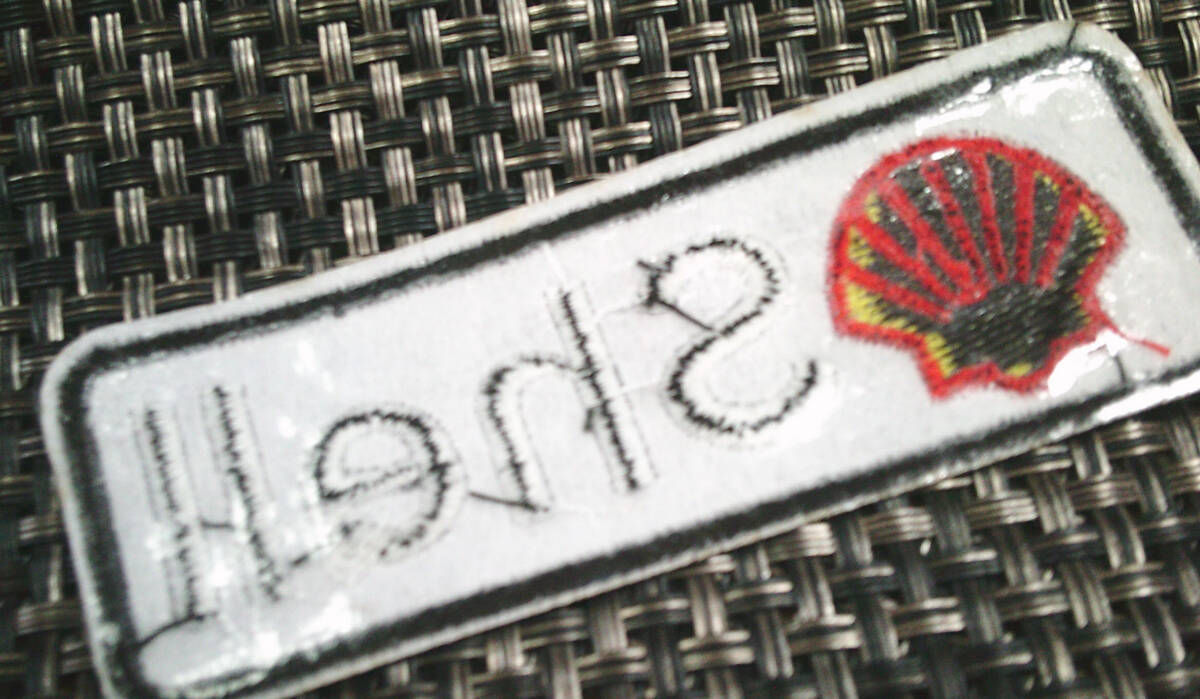 ◇《黒長Sh黄赤貝》 角丸長方形◆新品未使用 Shell シェル 石油 刺繍ワッペン(パッチ)◆モータースボーツ 自動車 バイク レース■洋服・衣類DIY