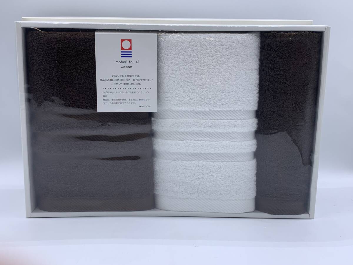 商品名:N41897I◇ 【箱付き 未使用品!!】今治タオル 3点セット PK9000-009 imabari towel Japan 家庭用品 日本製 ホワイト ブラウン【0】