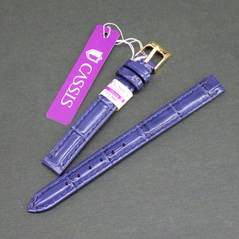 送料無料 バネ棒付き 特価 新品★CASSIS 時計ベルト 10mm ダークブルー 牛革バンド クロコ型押し★カシス正規品 定価税込3,300円