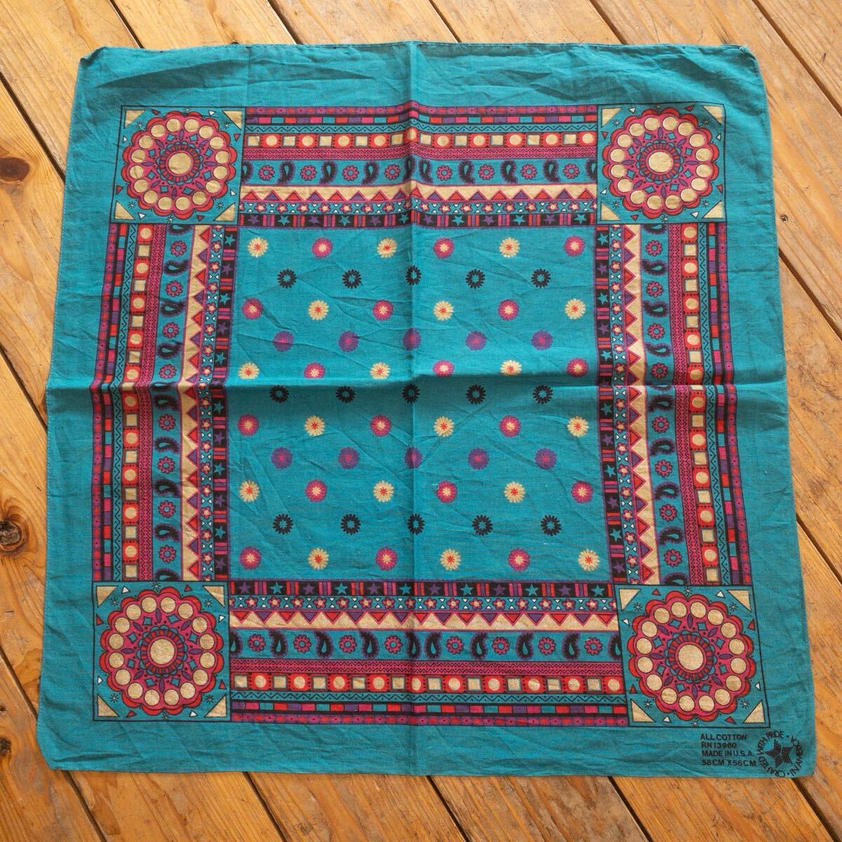 アメリカで購入したセカンドハンド(古着)の、 ネイティブ柄のバンダナです。