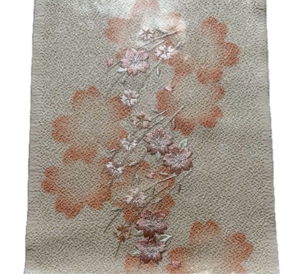 ・半衿 ベージュに桜柄と桜の刺繍