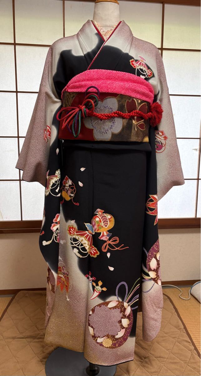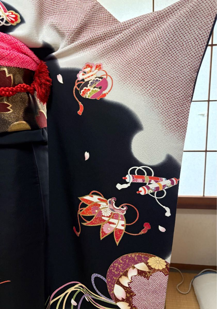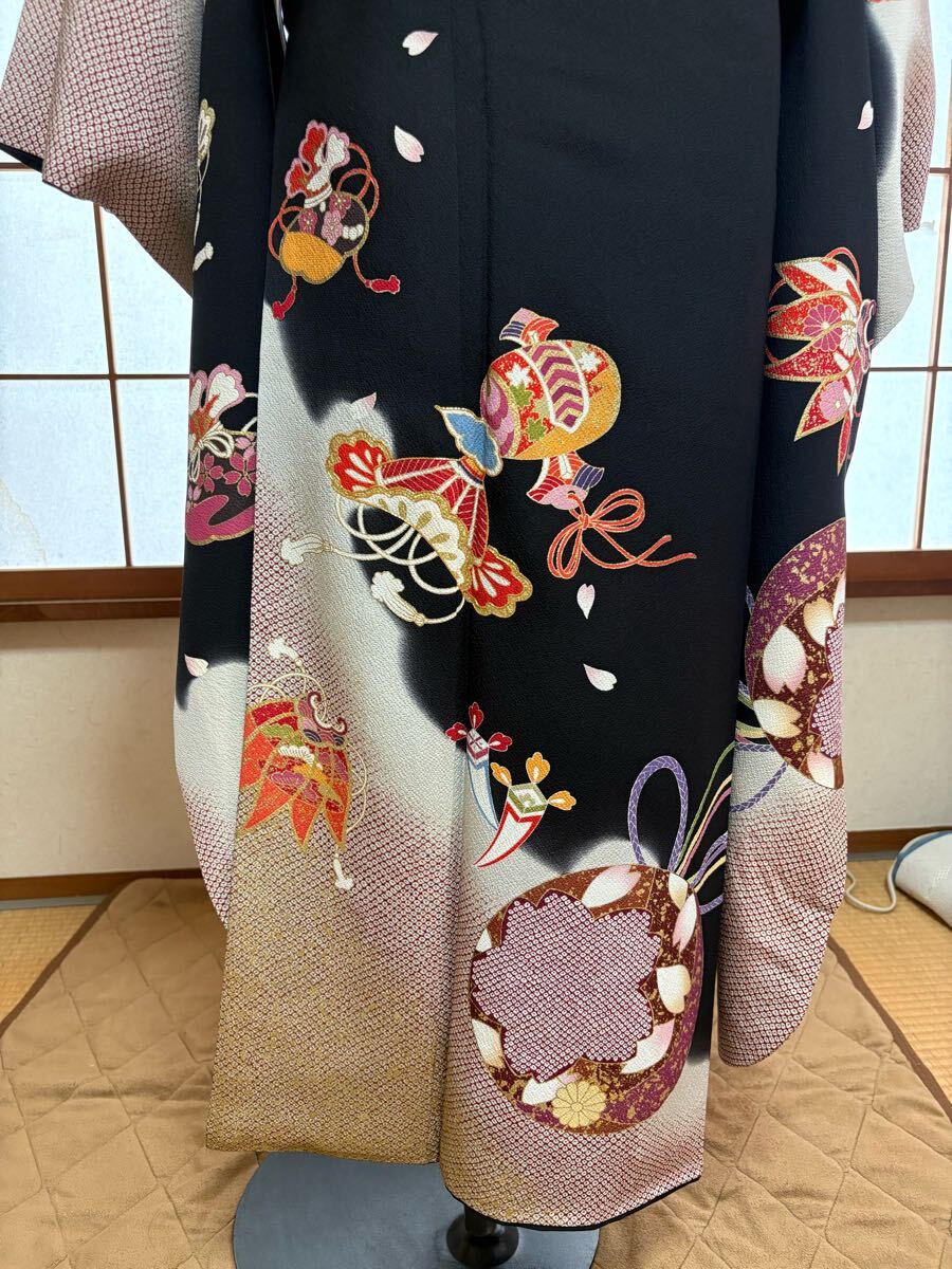 ・振り袖 黒地の宝尽くし柄