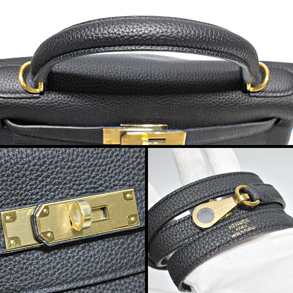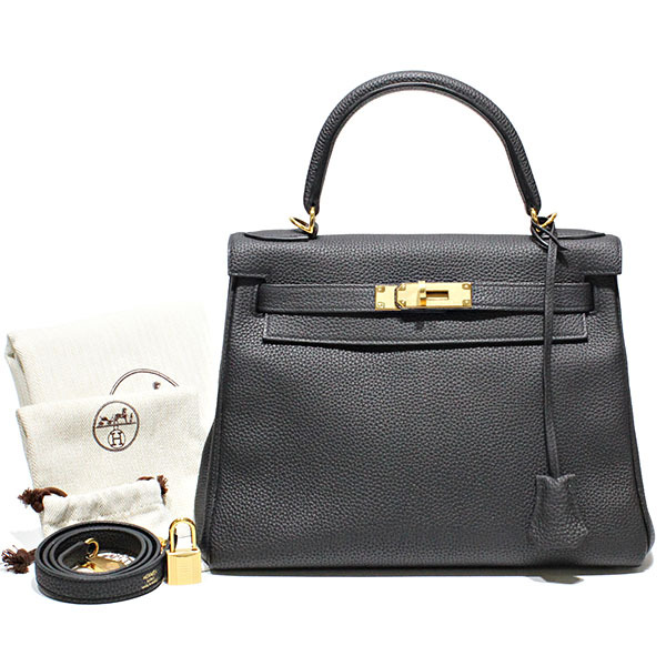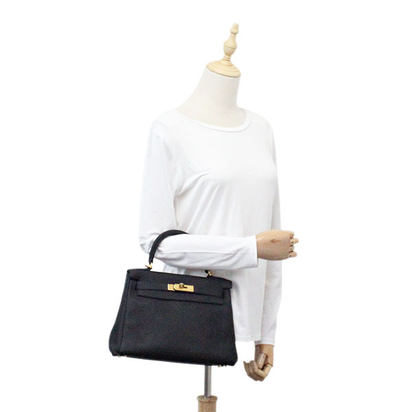 美品 エルメス HERMES ケリーバッグ 28 内縫い ブラック/ゴールド金具 トゴ 黒 ハンドバッグ D刻印 2019年製 ブランド レディース 人気