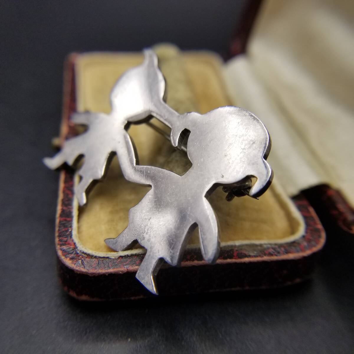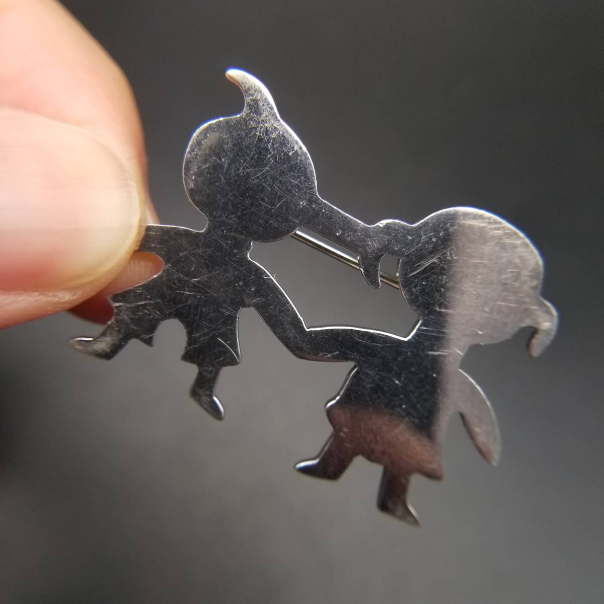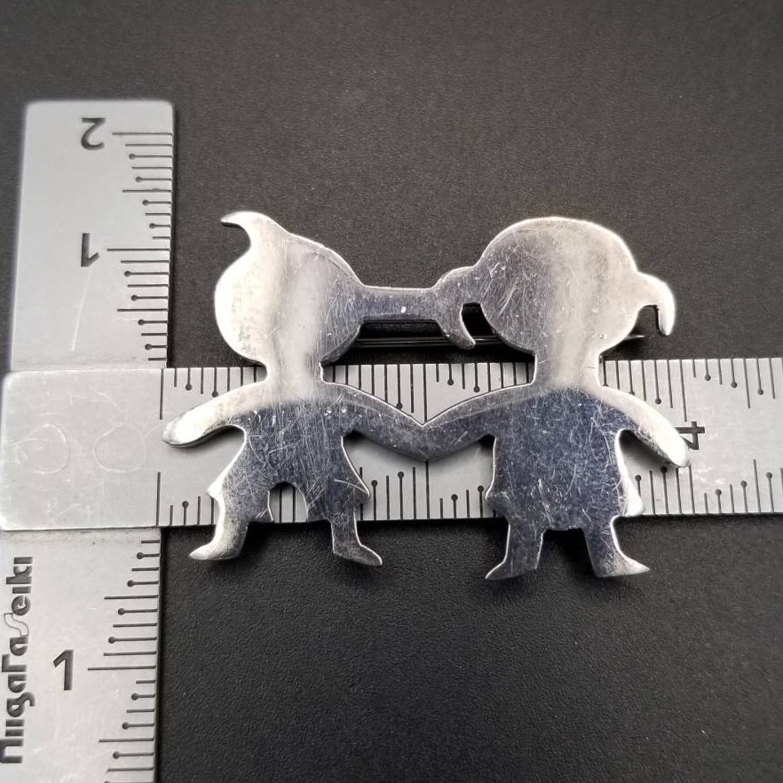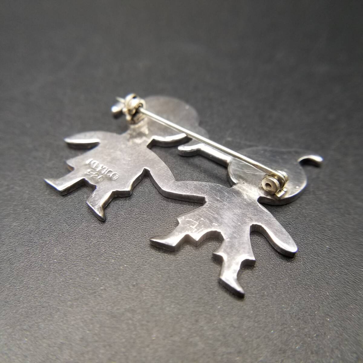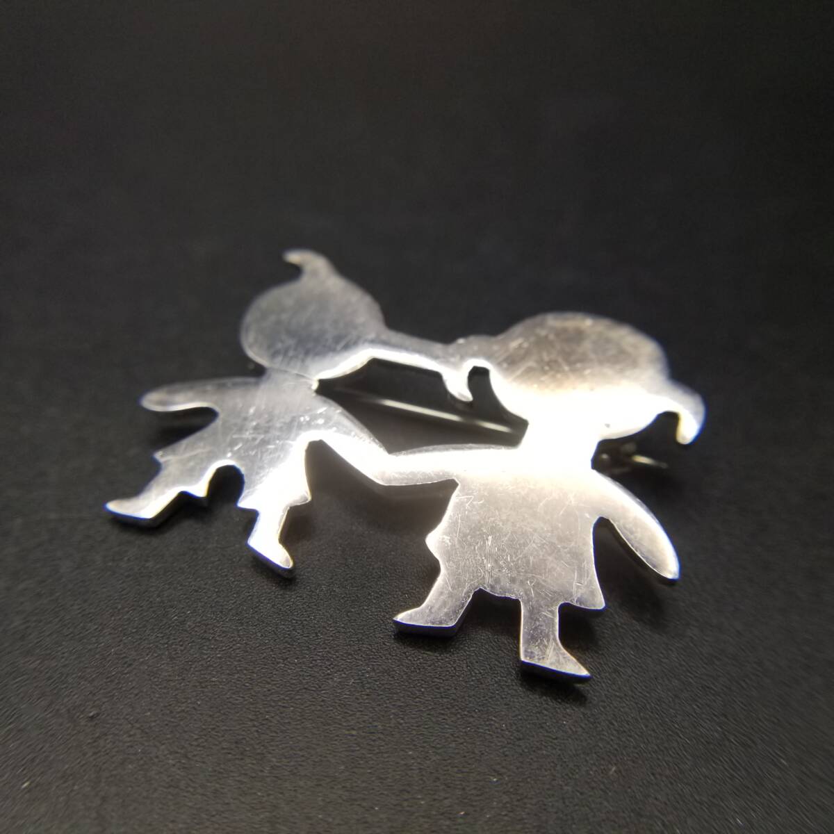 メキシコ 925 シルバー 手を繋ぐ子供 シルエット ヴィンテージ ブローチ 銀細工 キュート MEXICO R15-R