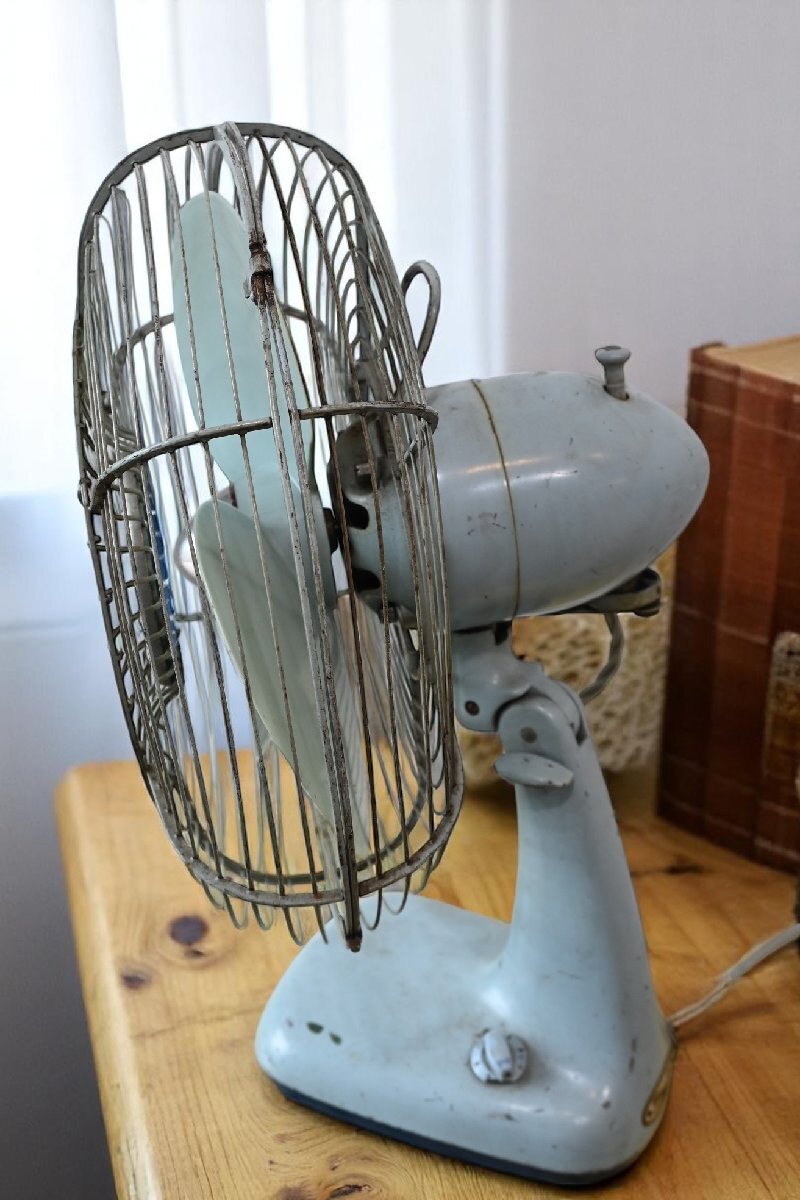 title:三菱 扇風機 淡いスカイブルー 送風可 レトロ 昭和 ヴィンテージ 古道具のgplus広島 2506i
