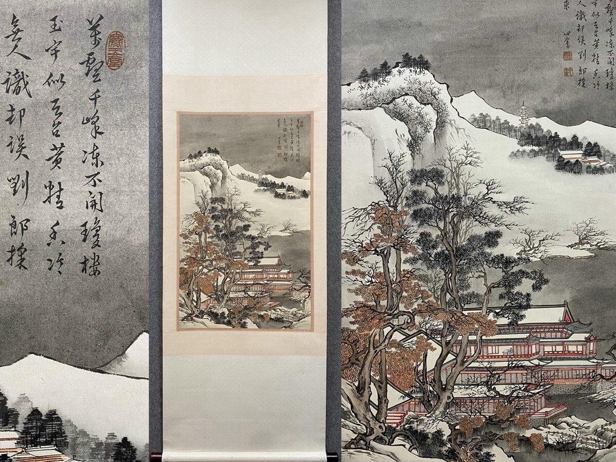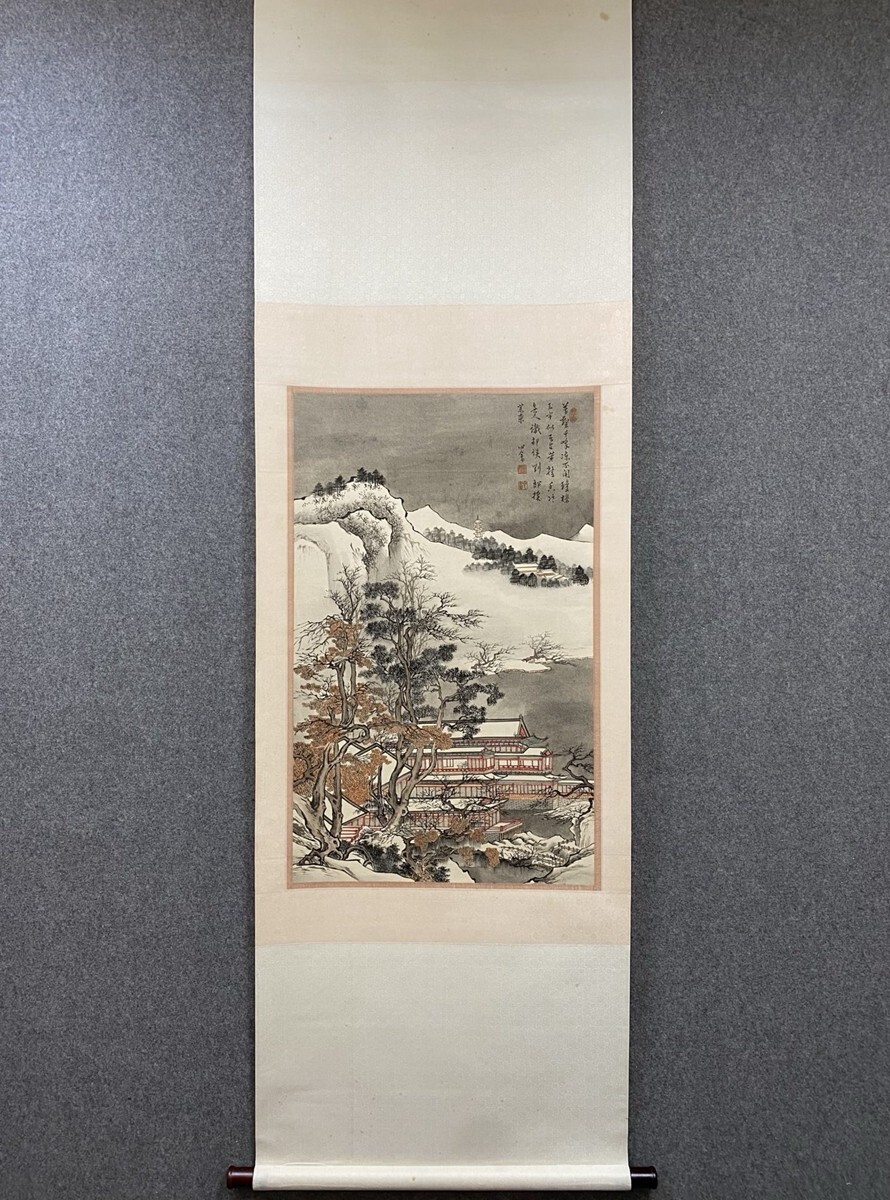 中国書画「溥儒 山水図」肉筆紙本 掛け軸 墨寶妙品 書画立軸 巻き物 古美術 旧蔵出