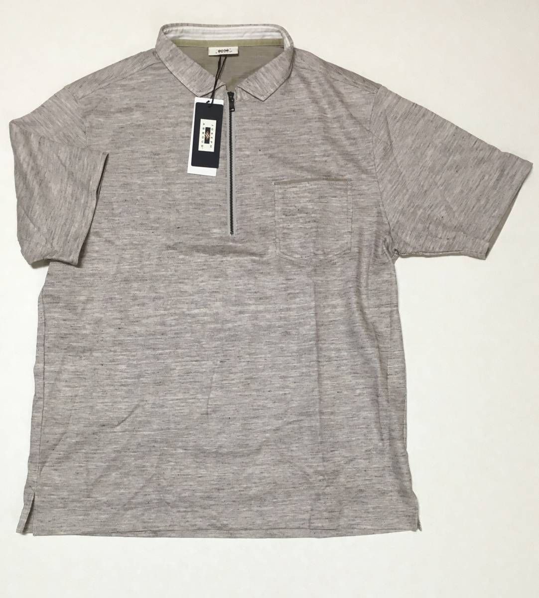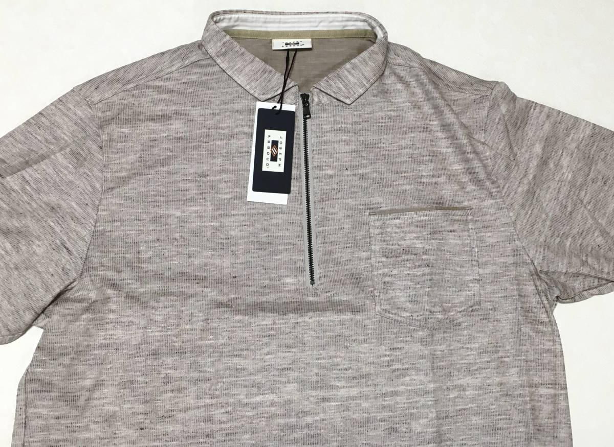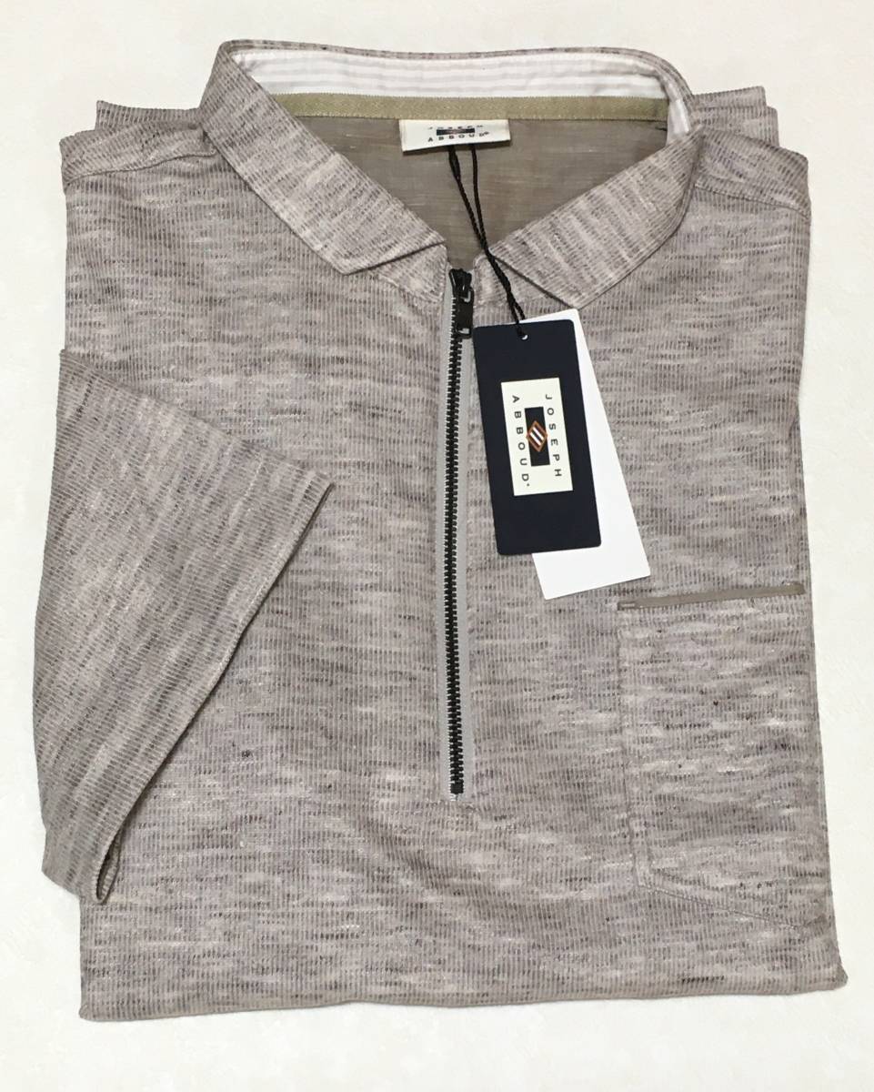 大きいサイズ JOSEPH ABBOUD 半袖 麻混ジップシャツ 2L ブラウン オンワード 定価17.600円